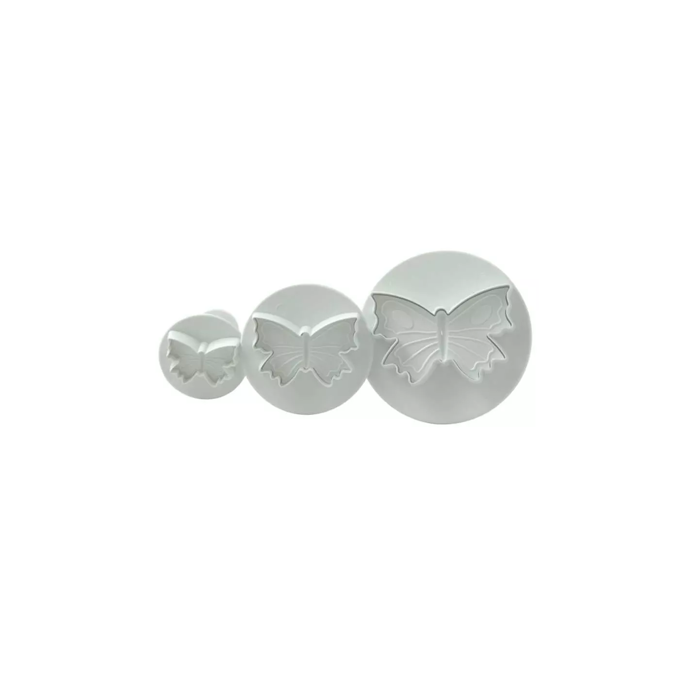 Este set de cortadores con expulsor en forma de mariposa pequeña es ideal para crear decoraciones originales a base de fondant, masa y pasta de goma para decorar cupcakes, galletas, pasteles, etc. Fácil de usar, solamente presione el cortador sobre la masa y expulse con el eyector. Están diseñados para un agarre y uso muy cómodo. Se recomienda lavar a mano con agua tibia y jabón.