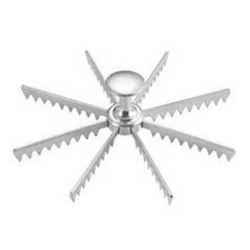 Servir porciones iguales de pastel es esencial en cualquier instalación de servicio de alimentos y el marcador de pastel de aluminio de 8 tajadas le ayuda a hacer el trabajo. Este marcador de pastel presenta hojas finas y dentadas que marcan claramente la parte superior de los pasteles para que sepa dónde se debe hacer cada rebanada. Hecho a mano de aluminio, este marcador de pastel fácil de limpiar resiste la oxidación y resistirá el uso intensivo. Para mayor comodidad, este marcador de pastel también es lo suficientemente afilado como para cortar pasteles suaves y pasteles de queso.