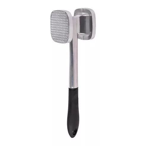 Prepare carnes para cocinar con el ablandador de carne de aluminio. Una gran adición a cualquier cocina comercial, un lado de este ablandador es perfecto para carnes duras como filetes de res y chuletas de cerdo, mientras que el otro lado tiene una superficie lisa y plana para aves.