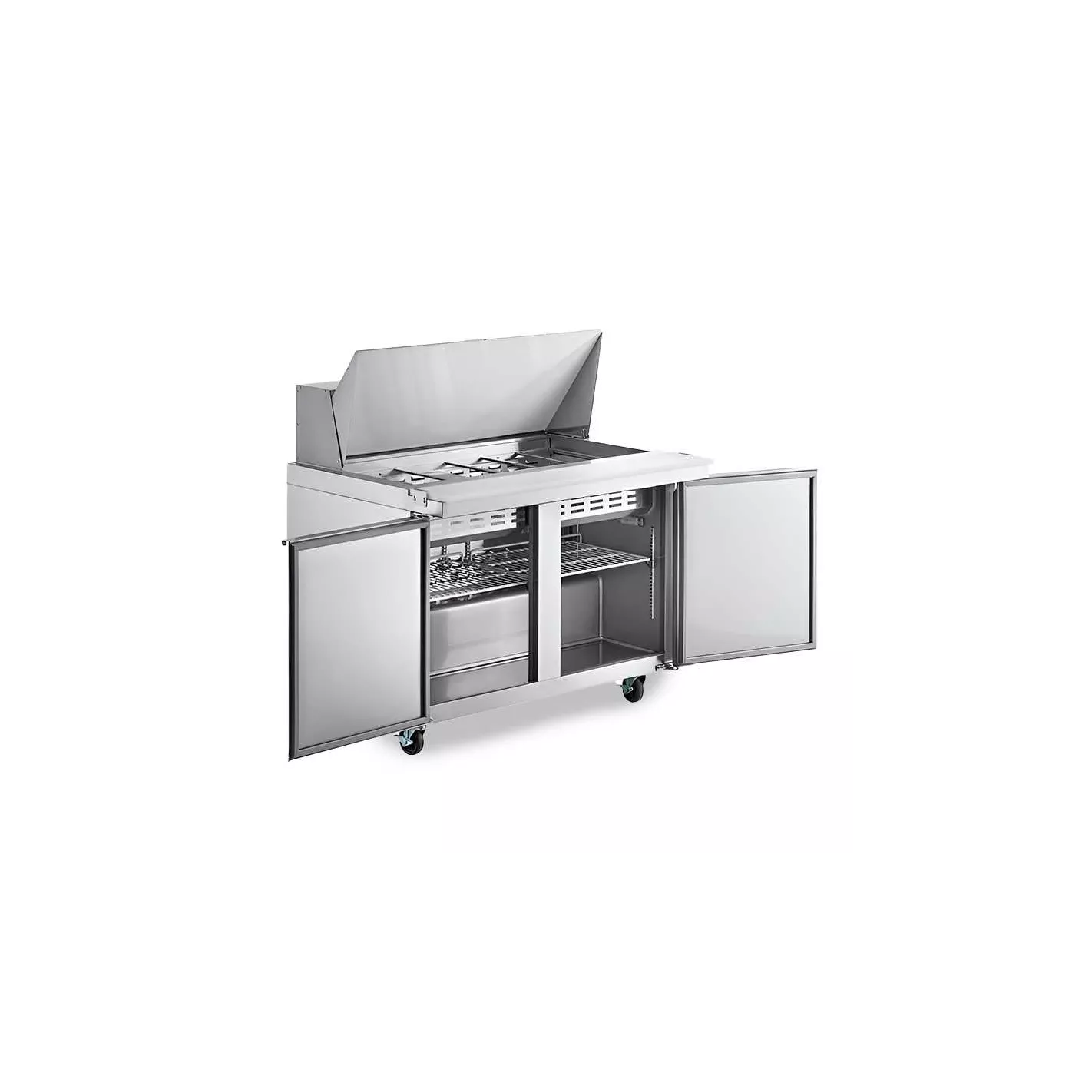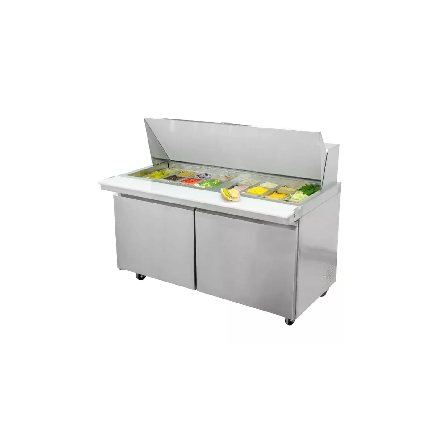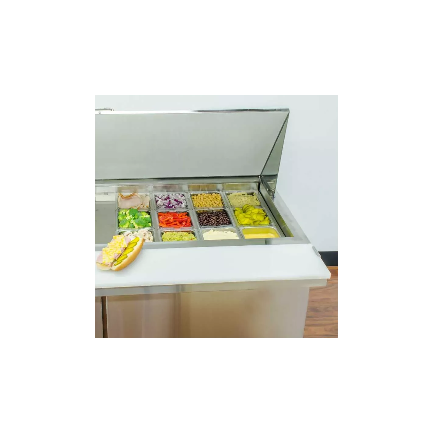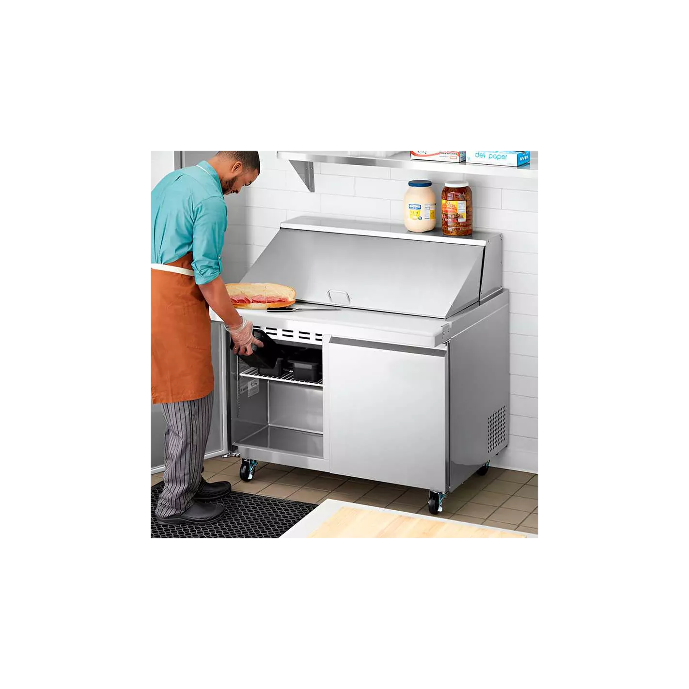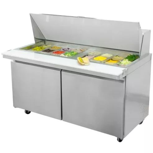 Prepare sándwiches a un ritmo récord y mantenga cualquier línea en movimiento con los refrigeradores U Star. Mantenga sus alimentos almacenados en los 15.5 pies cúbicos de espacio interior, incluido un estante extraíble / ajustable y resistente a la corrosión que puede contener hasta 90 libras. Con una tabla de cortar de alta resistencia y una elegante tapa enrollable que, además, puede contener hasta 24 bandejas de tamaño 1/6 mientras bloquea el aire fresco, lo que garantiza que los alimentos cortados se mantengan frescos en el sistema de refrigeración de 1/4 + HP que mantiene los alimentos en temperaturas seguras entre 33 y 41 grados Farenheit. La profundidad de 29.5 pulgadas lo convierte en una excelente adición para cocinas pequeñas.
