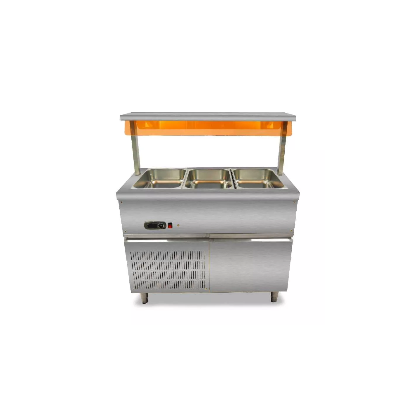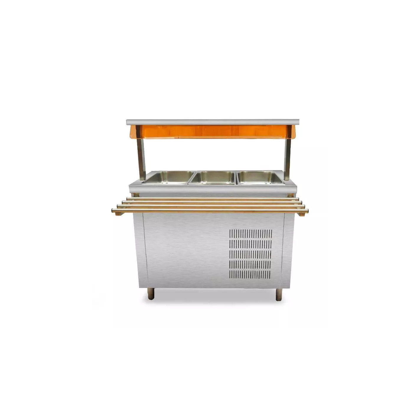 La Mesa Fría para Buffet 3GN de 110V es un equipo diseñado para mantener los alimentos fríos durante la presentación en buffets o eventos donde se requiere mantener una cadena de frío, asegurando que los alimentos se conserven en condiciones óptimas de temperatura. Es ideal para restaurantes, hoteles, y eventos de catering que usen este tipo de red eléctrica.