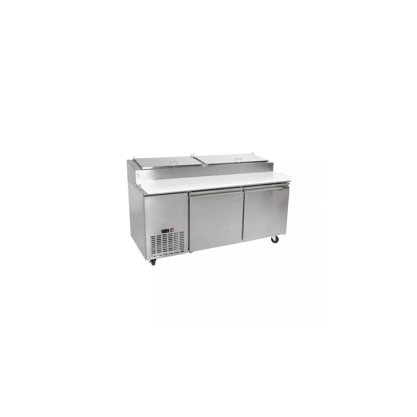 Las mesas de preparación de pizza de U-Star están construidas de acero inoxidable resistente tanto por dentro como por fuera, lo que las hace lo suficientemente fuertes y duraderas para sobrevivir en cualquier entorno de cocina. Puede contener una variedad de bandejas de diferentes tamaños de hasta 6 pulgadas de profundidad. Las unidades de refrigeración utilizan refrigerante R290 amigable con el medio ambiente. Mantiene un rango de temperatura de 32 °F – 41 °F. Los ventiladores de evaporador axial construidos resistentes, funcionan eficientemente con baja velocidad y alto volumen de flujo de aire.