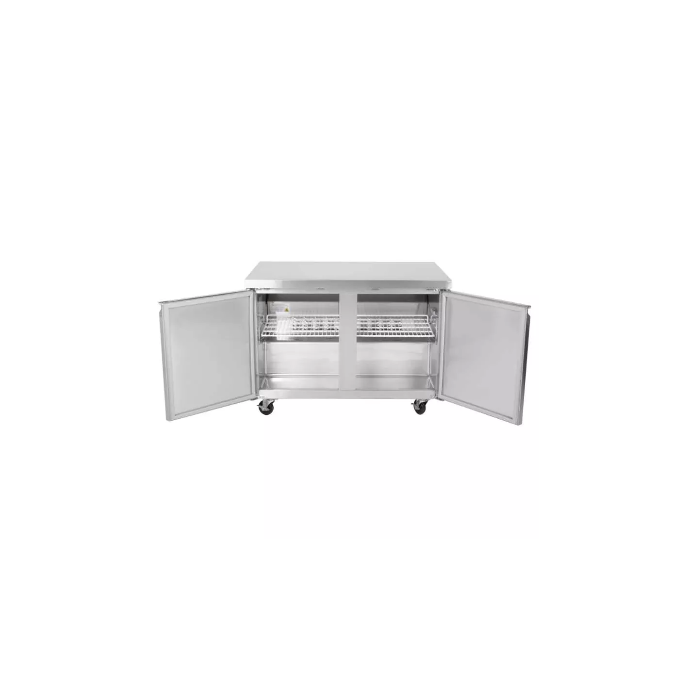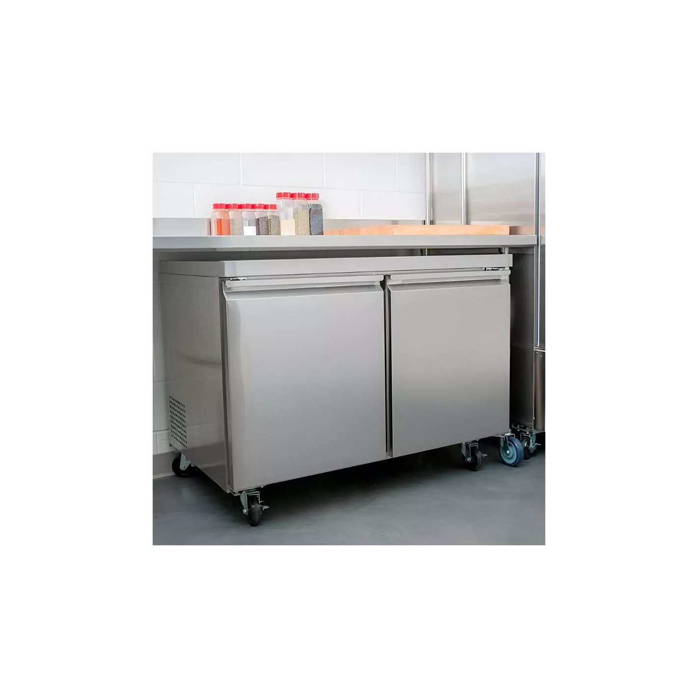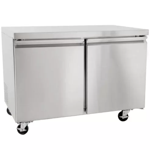 Los refrigeradores undercounter de U-Star están construidos de acero inoxidable de alta resistencia tanto por dentro como por fuera, lo que los hace lo suficientemente fuertes y duraderos para sobrevivir en cualquier entorno de cocina. Estas unidades son perfectas para agregar más espacio de almacenamiento en cualquier lugar que necesite. Todas las unidades debajo del mostrador vienen con ruedas de 6 pulgadas y estantes de alambre recubiertos de plástico. Tiene un rango de temperatura de 32° F – 41° F. Los ventiladores de evaporador axial de construcción robusta funcionan de manera eficiente con baja velocidad y alto flujo de aire. El controlador de temperatura LED eléctrico proporciona una pantalla digital del gabinete. Permite ajustes de temperatura fáciles cuando sea necesario. El controlador de temperatura inicia el programa de descongelamiento automático para un uso sin preocupaciones.