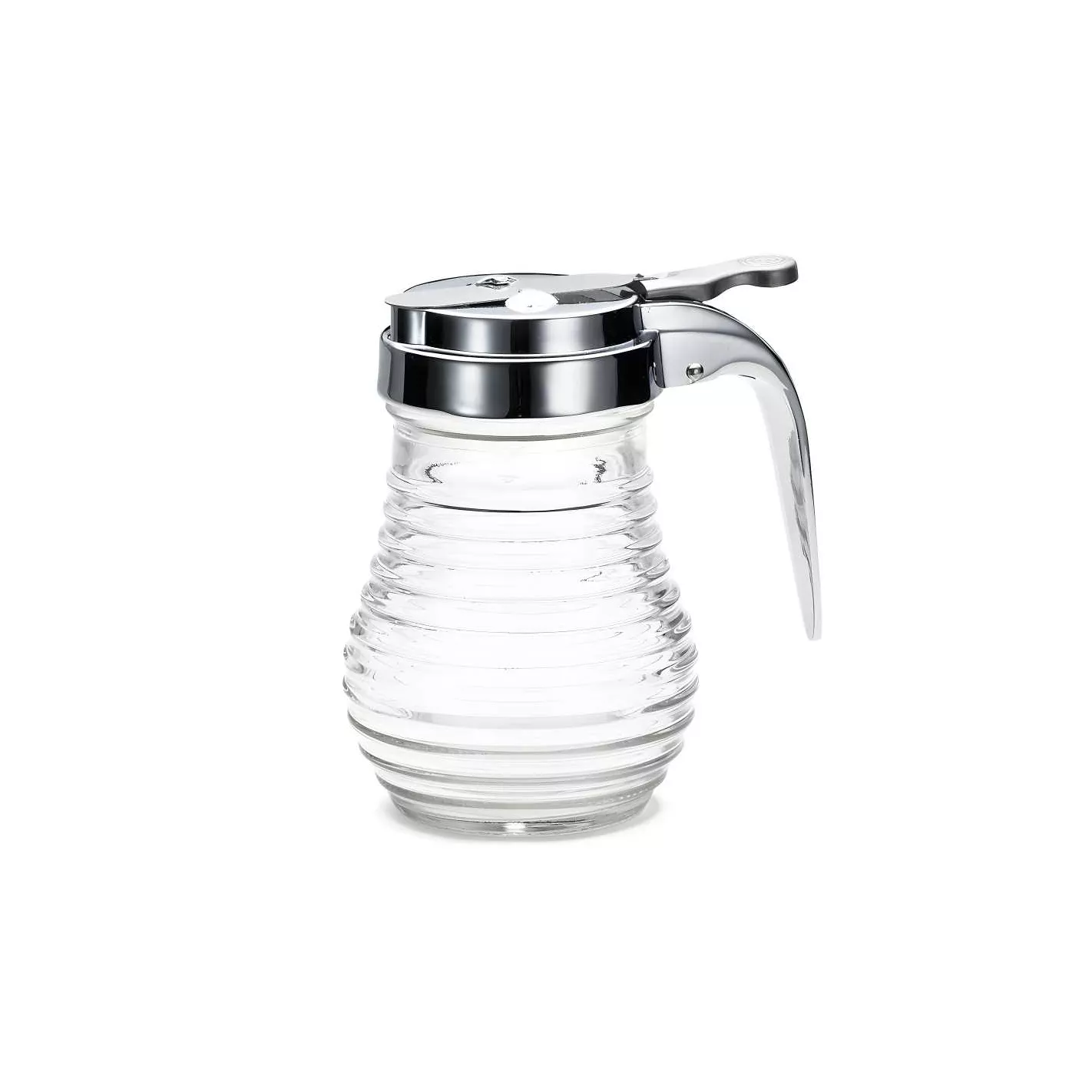 Su diseño vintage clásico es un estilo popular para los servidores de jarabe y seguramente combinará con la decoración de su restaurante, cafetería y otros lugares para comer! Diseñado pensando en una fácil limpieza, una parte superior cromada de rosca duradera con una palanca de pulgar fácil de verter asegura un vertido eficiente en todo momento.