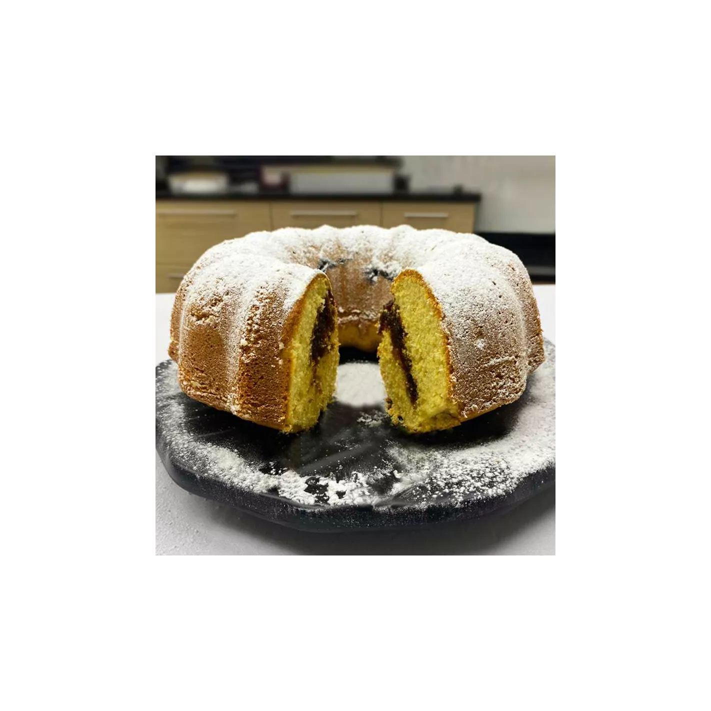 1-Colocamos 4 claras de huevo y batimos por aproximadamente un minuto hasta alcanzar una textura cremosa, y luego lo apartamos en un bowl. Ahora vamos a preparar la masa agregando 2 barras de mantequilla, 1 taza de azúcar, 4 yemas de huevos, 1 cucharadita y media de vainilla y batimos. En un bowl con 2 tazas y media de harina, media taza de fécula de maíz y cernimos, una pizca de sal. Ahora agregamos a la batidora y vamos alternando con 1 taza de jugo de naranja. Luego añadimos las claras de huevo batidas, y mezclamos muy bien. En nuestro molde tipo chimenea colocamos una capa de la mezcla, luego 300 gramos de chiverre y una ultima capa de mezcla. Llevamos al horno a 180°C por 45 minutos aproximadamente. Para finalizar lo espolvoreamos con azúcar glass.