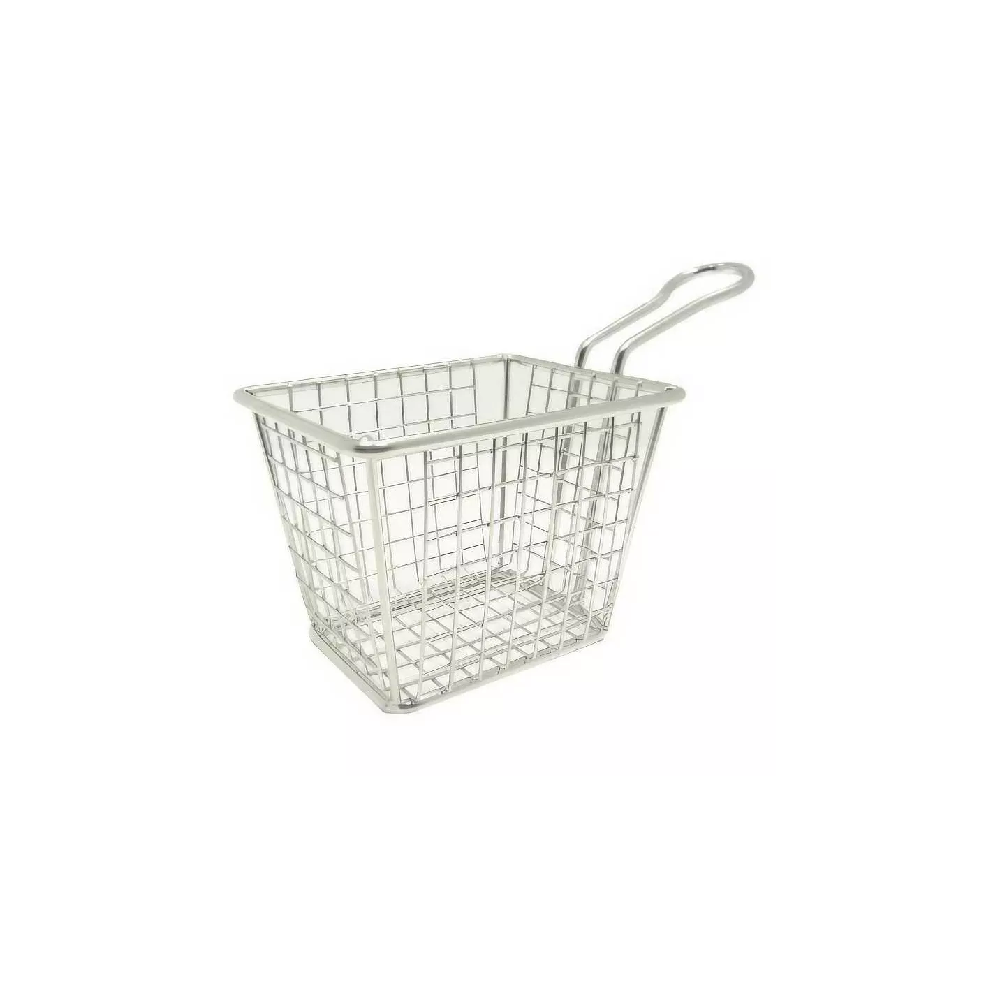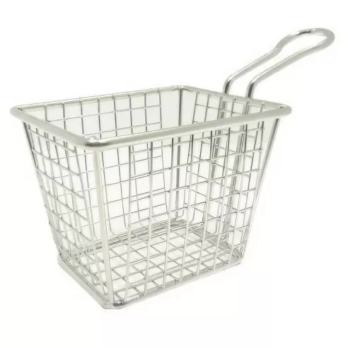 La mini canasta para snacks cuadrada está fabricada en acero inoxidable y su diseño es apto para servir papas fritas u otros fritos de la cocina, tiene un asa para sostener y servir fácilmente y sus dimensiones son: 10 x 8 x 8-1/2 centimetros. Canasta resistente a la corrosión y al uso constante.
