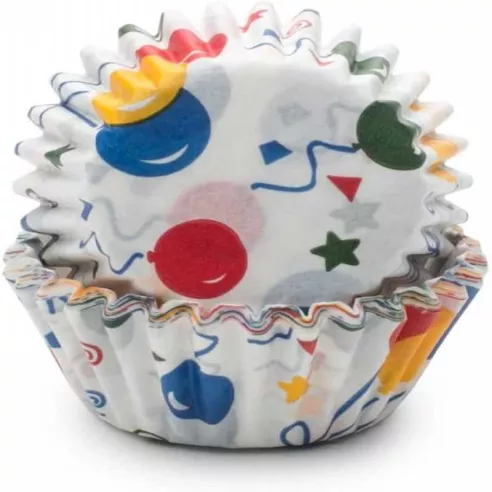 ¡Es hora de ponerse festivo! Estas divertidas cápsulas temáticas para fiestas seguramente comenzarán la fiesta. Este juego incluye 75 mini cápsulas para hornear de papel estriado, seguras para alimentos, para que pueda hornear y servir toneladas de pastelitos para sus invitados. Simplemente colóquelo en un molde para muffins y llénelo con su masa favorita para vestir sus pastelitos.PESO NETO: ONZAS = 0.32