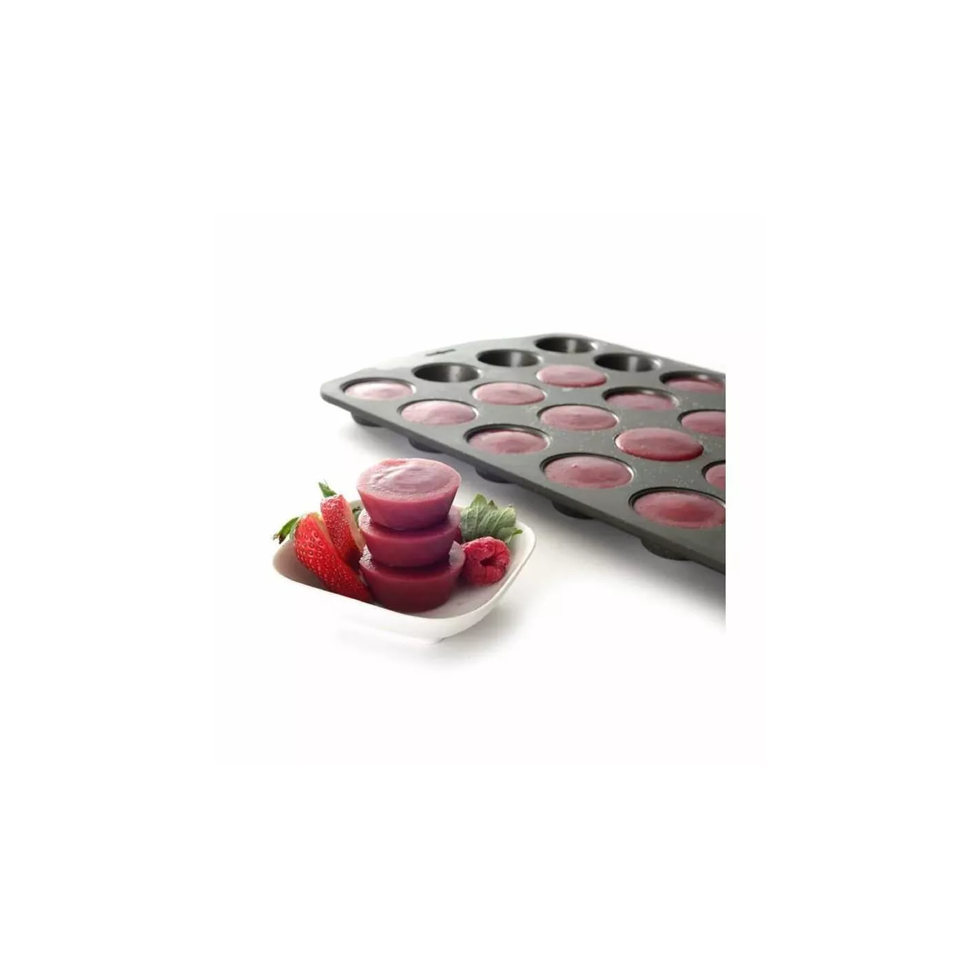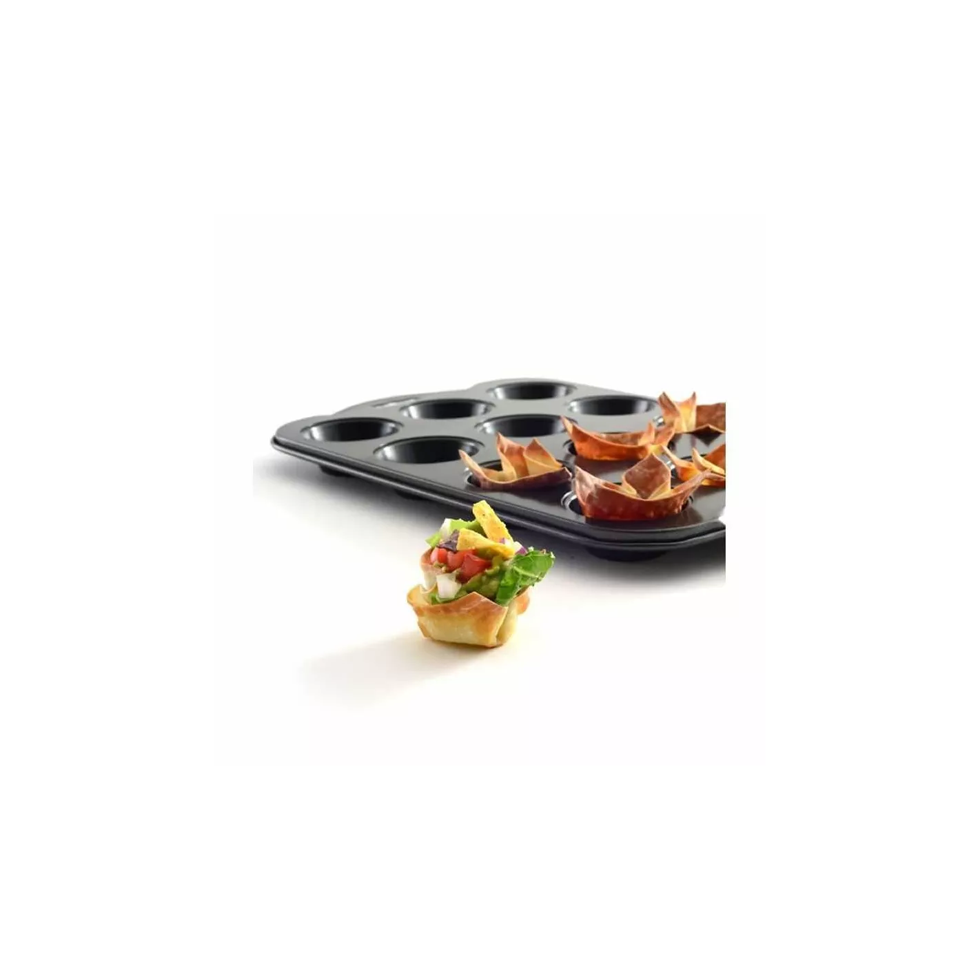 Molde con capacidad de hasta 12 cupcakes construido con un revestimiento antiadherente con una fácil liberación para preparar deliciosos mini Muffins / cupcakes de forma fácil y rápida. Gracias a su material en acero de alta calidad, la calefacción será sumamente eficaz. Cuenta con unas medidas de 0.75 pulgadas de alto x 13 pulgadas de ancho x 8 pulgadas de profundidad y con una capacidad de hasta 12 cupcakes o magdalenas con una medida de 2 pulgadas para cada cupcake