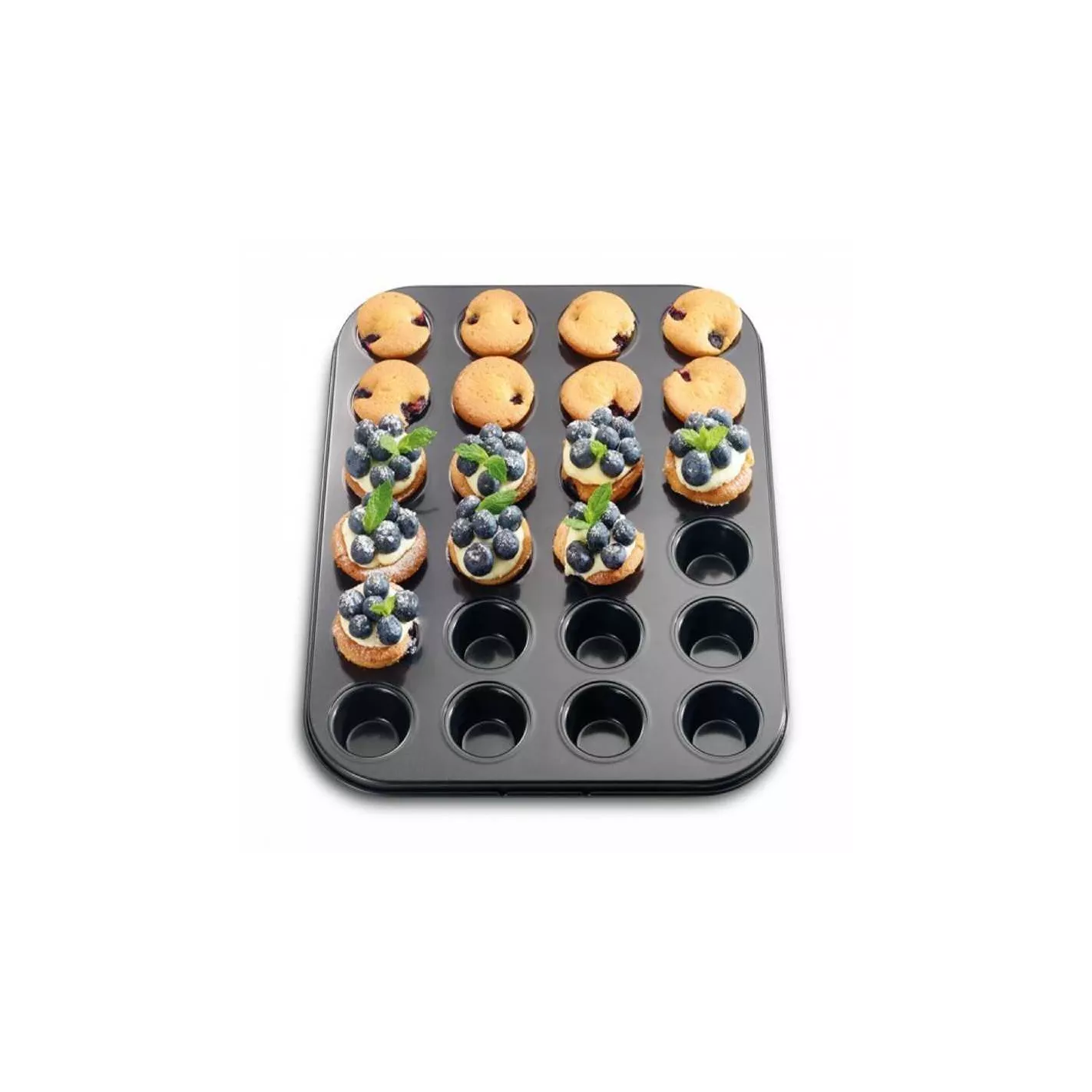 ¡Prepara deliciosos mini cupcakes, tartas de queso y muffins individuales pequeños para la escuela, el trabajo o el postre en casa con este molde de calidad! Hecho de materiales duraderos de grado industrial, este molde presenta un acabado antiadherente para una extracción fácil y sin esfuerzo de productos horneados. ¡Impresiona a tu familia y amigos con tus habilidades para hornear y decorar con imaginación!