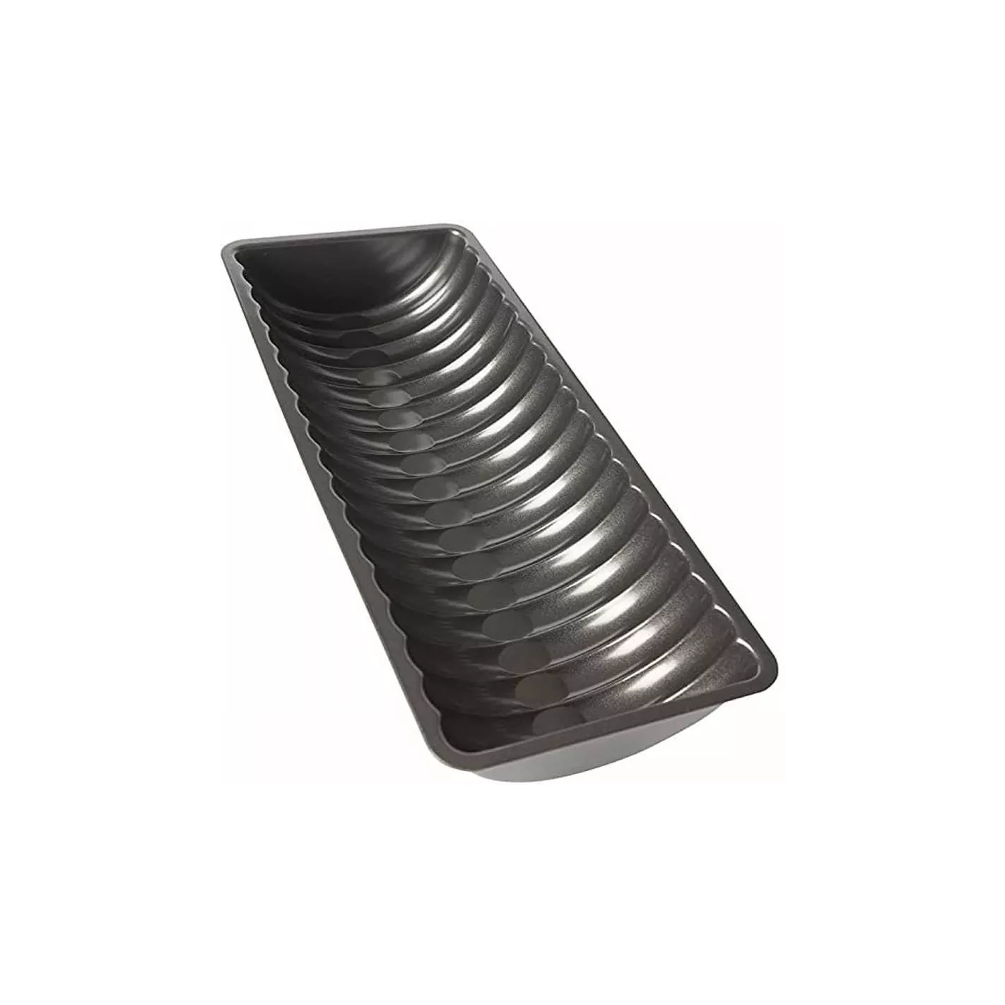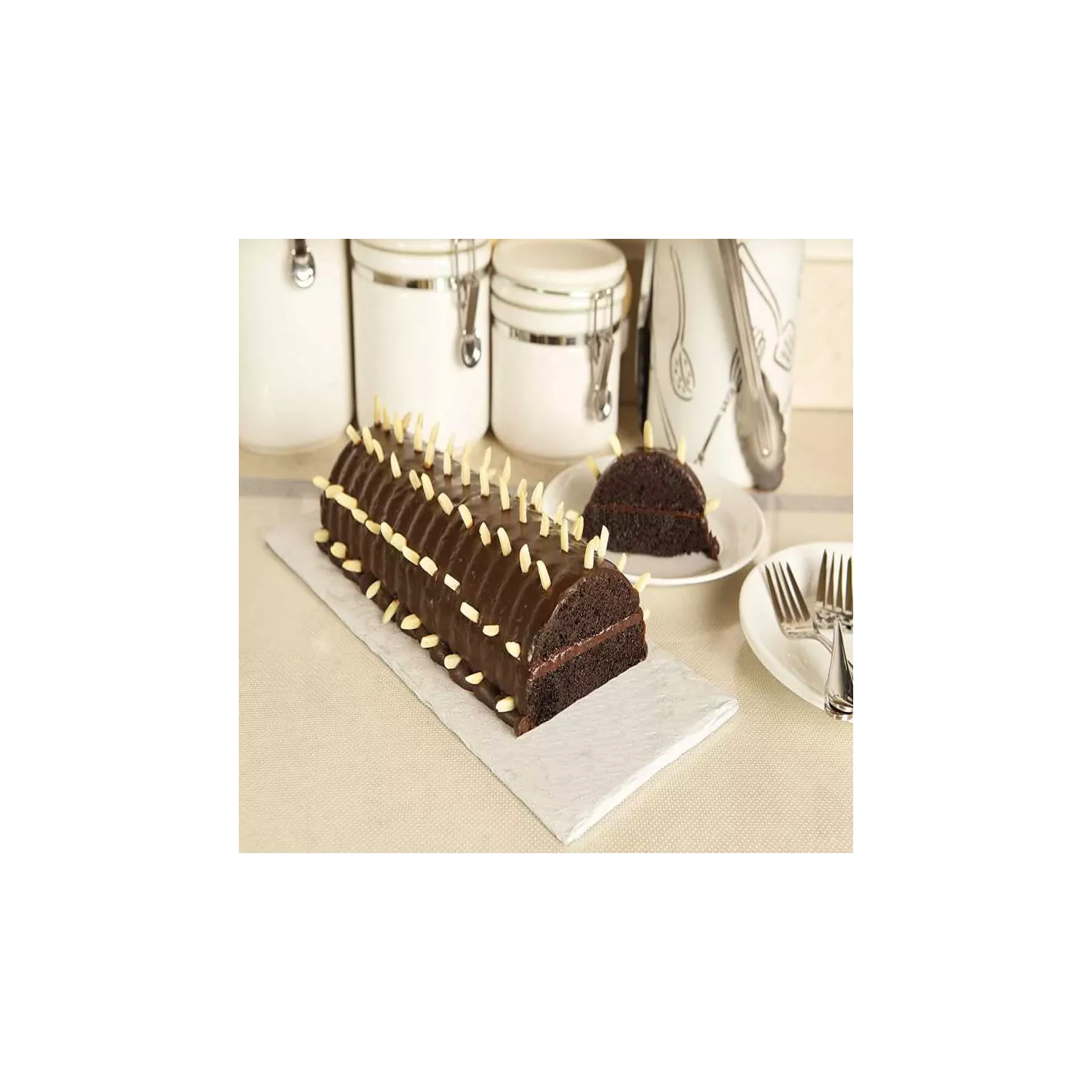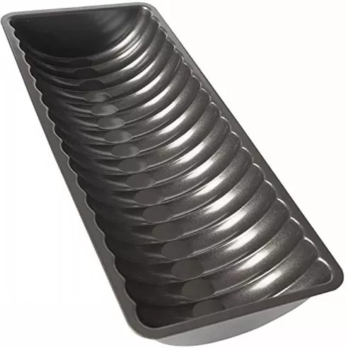 Rehrücken o pastel de almendras, un postre austriaco / alemán, es un pastel de registro de chocolate húmedo con una rica formación de glaseado con almendras. Este molde de Fox Run es perfecto para hornear este postre tradicional, hecho de acero al carbono con un acabado antiadherente de primera calidad para una fácil liberación y limpieza. Una columna vertebral plana corre a lo largo de este molde para equilibrarlo, y las costillas del molde hacen que sea fácil dividir el pastel en rebanadas uniformes. El pastel clásico está hecho con almendras molidas en lugar de harina, tan rico que las porciones deben ser pequeñas. También puedes usar el molde para hornear otros pasteles o pan. Hornee este impresionante pastel alemán para su próxima ocasión especial, seguramente hará una gran aparición en cualquier mesa festiva.