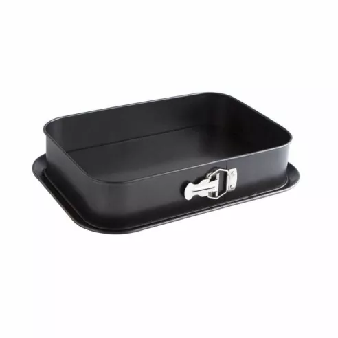 Perfecto para brownies, pasteles de queso y otros postres. Este molde desmontable rectangular cuenta con revestimiento antiadherente exclusivo de primera calidad que combina acero resistente con la última tecnología antiadherente, tiene una base resistente a los cortes. La tecnología de alta calidad de los lados extraíbles crea un ajuste a prueba de fugas y permite el pandeo a la izquierda o la derecha; simplemente voltee el anillo exterior para cambiar la dirección.
