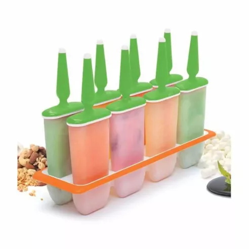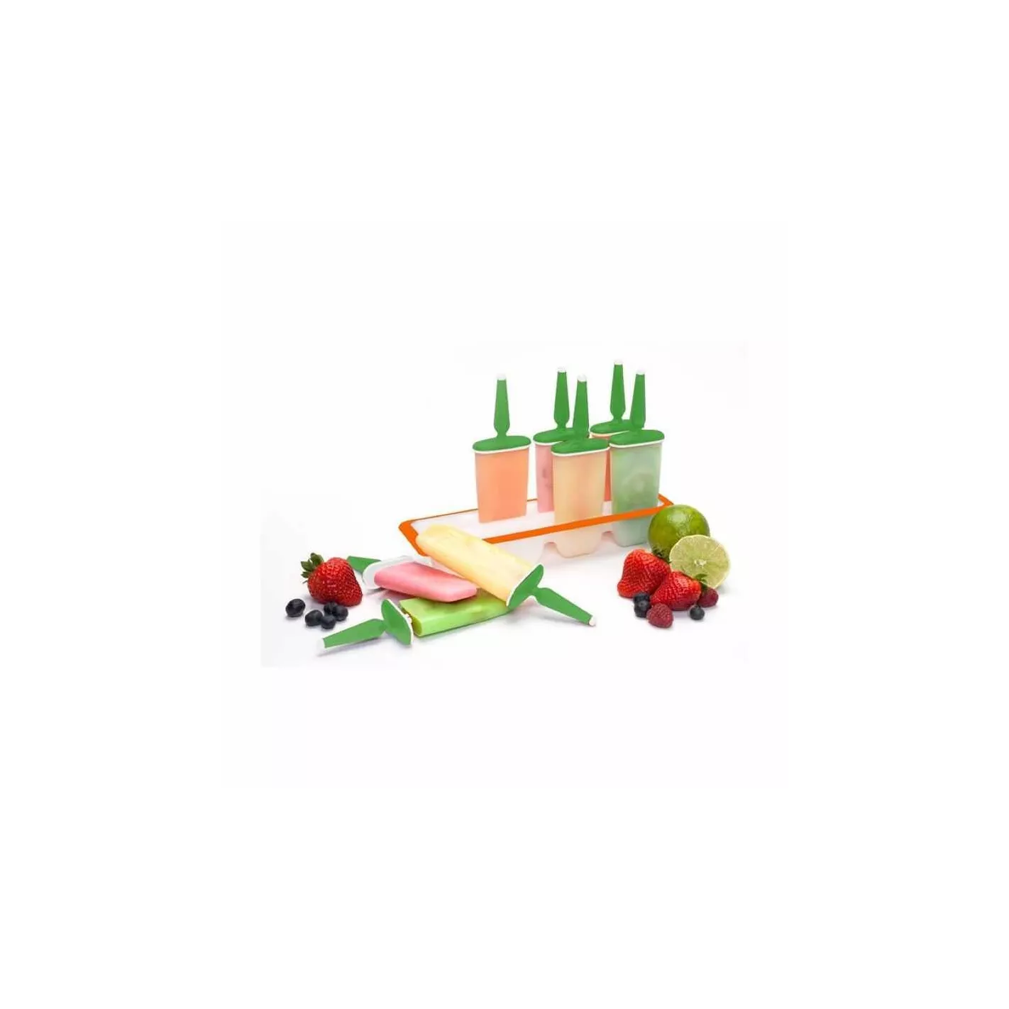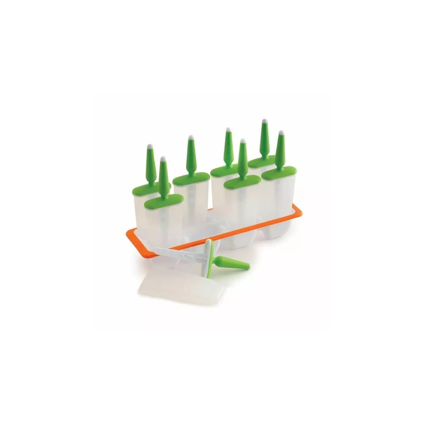 La forma delgada de cada una de las paletas para helado usa muy poco espacio en el congelador lo que ayuda a economizar espacio, junto con sus manijas que son fáciles de agarrar, incluso son cómodas para manos pequeñas y grandes por lo cual es apto para los mas pequeños de la casa. Crea y prueba varias conbinaciones usando las 8 paletas con capacidad de 2 onzas cada una y refréscate con 8 distintos sabores.