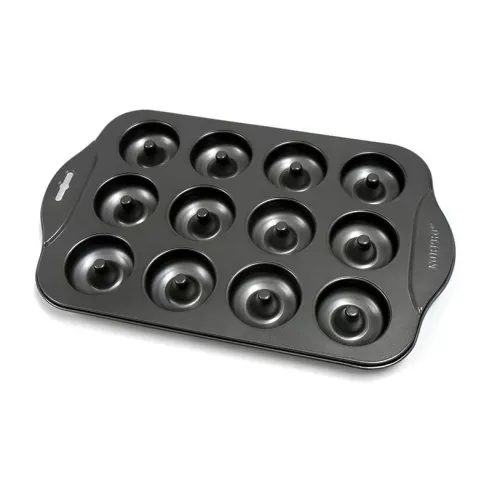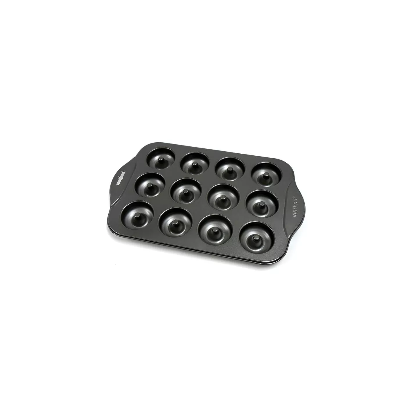 ¡Prepare donas caseras deliciosas y bajas en grasa para el desayuno, el brunch o cualquier ocasión especial con esta sartén de calidad! Fabricada con materiales duraderos de calidad industrial, esta sartén cuenta con un acabado antiadherente para retirar los productos horneados de forma fácil y sin esfuerzo. Incluye asas anchas para un fácil agarre.