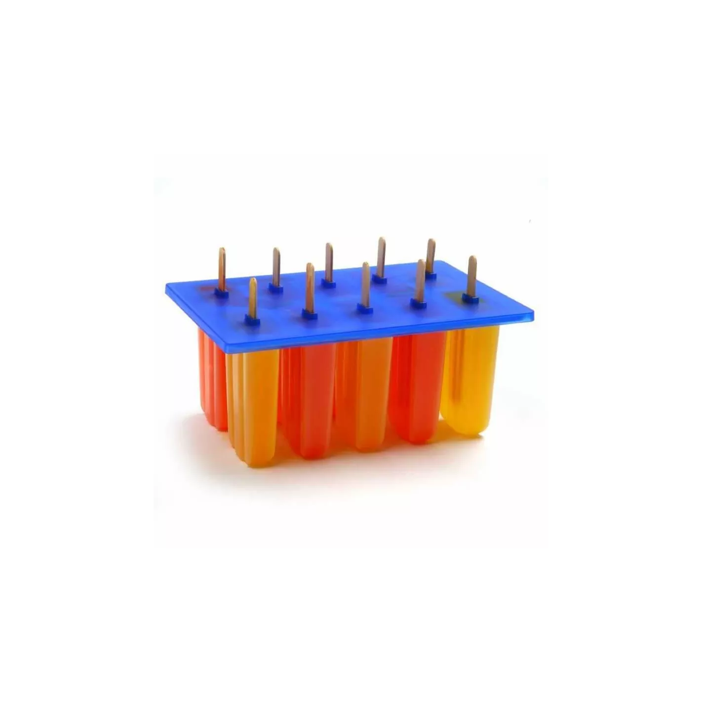 Hecho de plástico duradero libre de BPA, este producto para hacer helados se adapta fácilmente a su congelador para hacer jugo, yogur, gelatina, pudín o paletas de fruta. También es ideal para hacer paletas de helado. Esta herramienta se almacena fácilmente en sus gabinetes e incluye 24 palos de madera. Mide 9 centímetros de ancho x 5 centímetros de profundidad / 3.5 pulgadas x 2 pulgadas. Lavado a mano recomendado