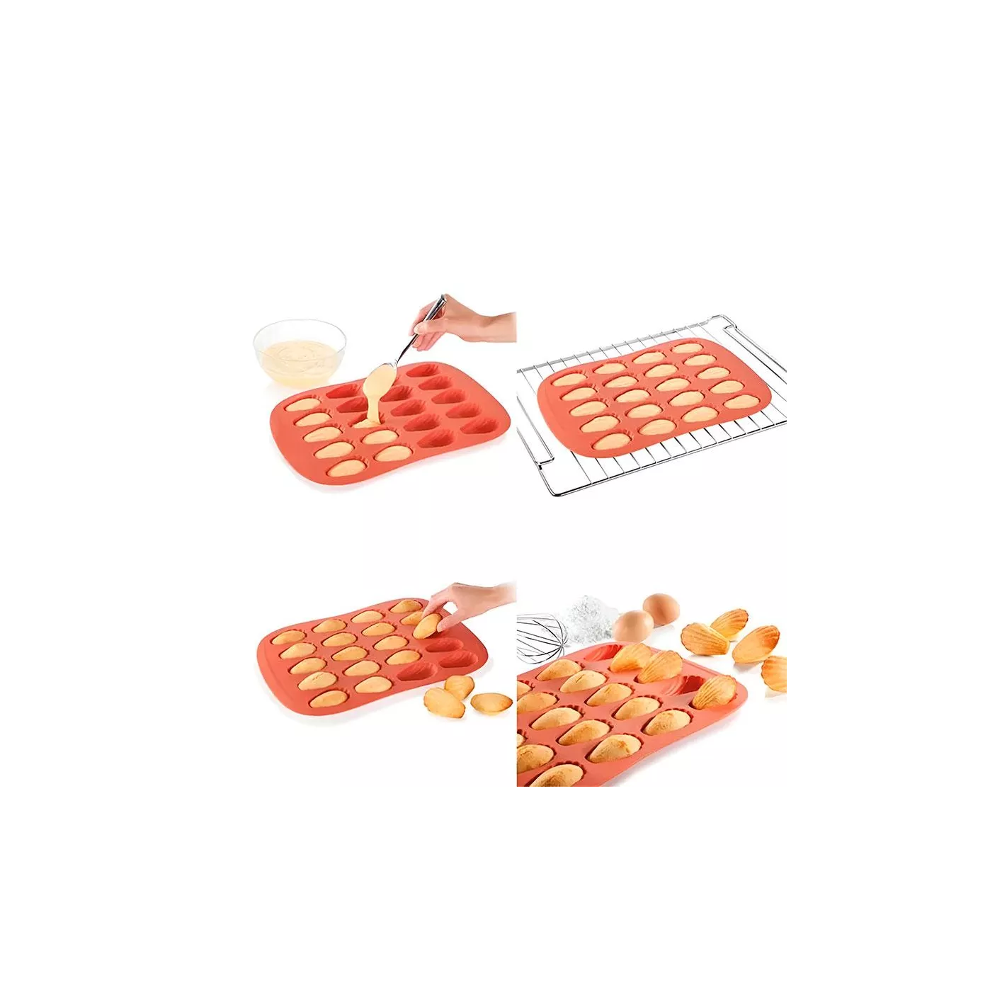 Este molde cuenta con 20 cavidades en forma de concha, símbolo distintivo de las madeleines, garantizando resultados uniformes y perfectos en cada horneado. Su diseño antiadherente de alta calidad y capacidad para producir múltiples unidades lo convierten en una inversión excelente si te apasiona la repostería.