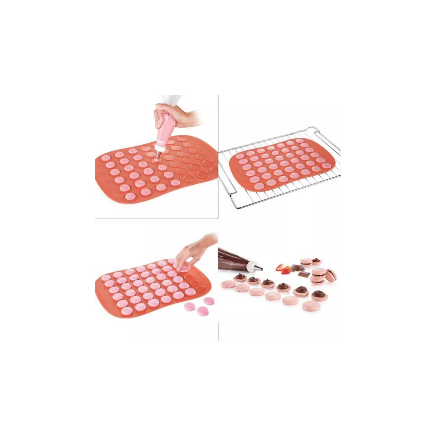 Este molde está elaborado en silicona de grado alimenticio y cuenta con cavidades uniformes, asegurando que cada macaron tenga un tamaño perfecto y una textura uniforme. Su diseño antiadherente, flexibilidad y durabilidad lo convierten en una herramienta imprescindible para lograr macarons de calidad profesional. Perfecto para quienes buscan resultados precisos y estéticamente agradables en cada horneada.
