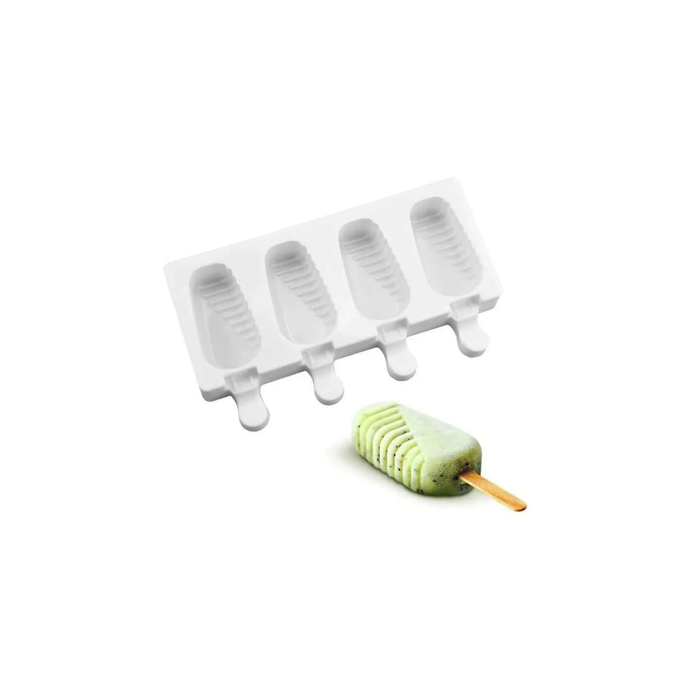 Molde de silicón de grado alimenticio con 4 cavidades ideales para crear paletas estilo Magnum de manera profesional y personalizable.