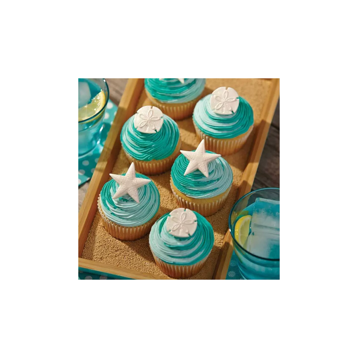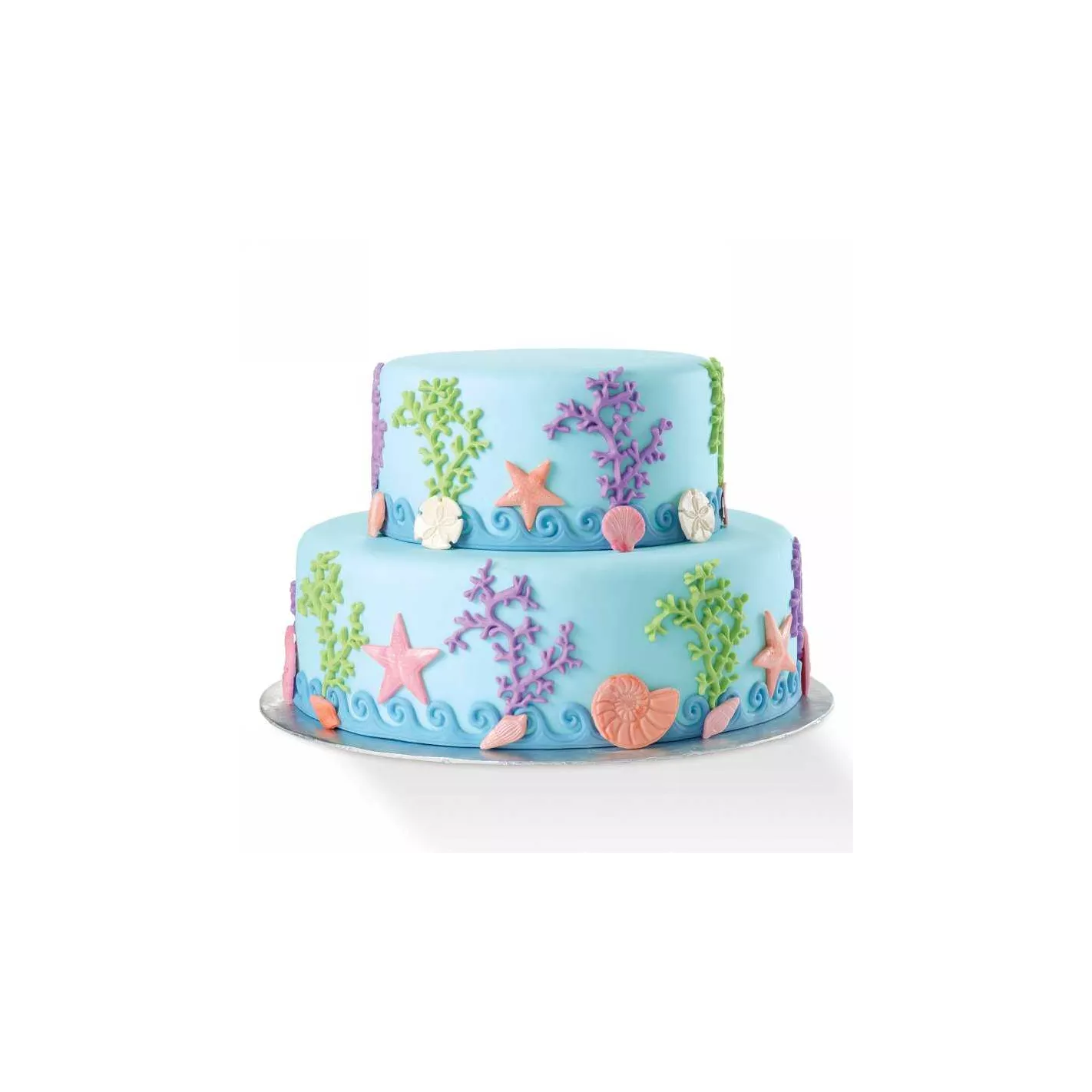 El uso de este molde de silicona con fondant o pasta de goma seguramente sacará a la luz su habilidad interior. Crea conchas marinas, estrellas de mar, ramas de coral y bordes de olas oceánicas en pasteles, magdalenas y más.