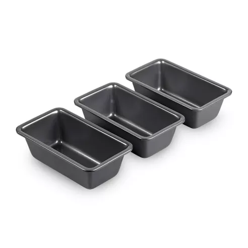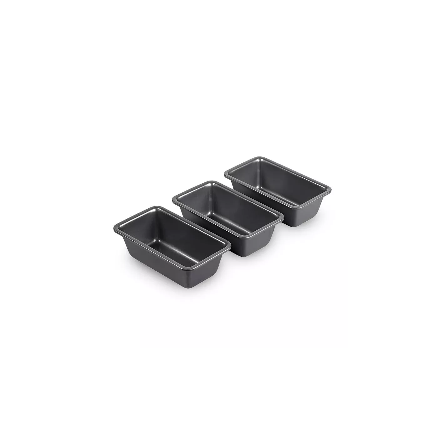 ¿Te encanta hornear pan? Este conveniente juego de 3 mini moldes para pan maximiza el espacio del horno y minimiza el tiempo de cocción. Construido de acero de gran calibre para un calentamiento uniforme que le da un acabado perfectamente dorado a sus pasteles, pan de maíz u otros panes caseros.