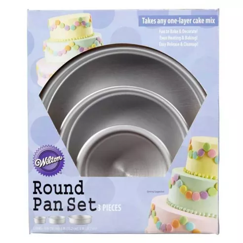 Puedes hornear un pastel en niveles completos de una sola vez con este set redondo de moldes para pasteles. Ábrete camino hasta el pastel de cumpleaños, aniversario o boda perfecto con este set de moldes redondos de 3 piezas. Hecho con aluminio premium para un calentamiento uniforme, los lados son más profundos, por lo que obtienes pasteles más altos que son perfectos para superponer y decorar.