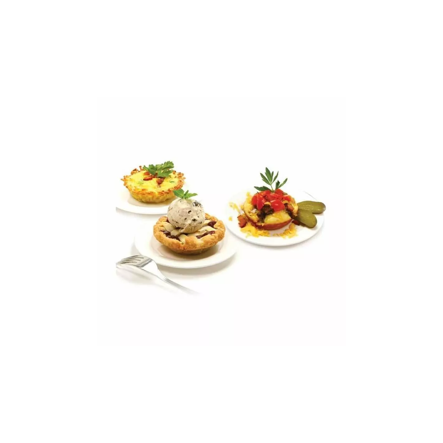 Hornee el pastel personal favorito de todos para el trabajo, la escuela o el postre en casa con estos moldes para pasteles de calidad. Hecho de acero resistente y resistente, estos moldes también son ideales para hacer bizcochos individuales para tarta de fresa. Cuenta con un revestimiento antiadherente para una fácil extracción y limpieza. Mide: 5 pulgadas x 1.25 pulgadas / 13 centímetros de diámetro x 3 centímetros de altura. Lavado a mano recomendado.