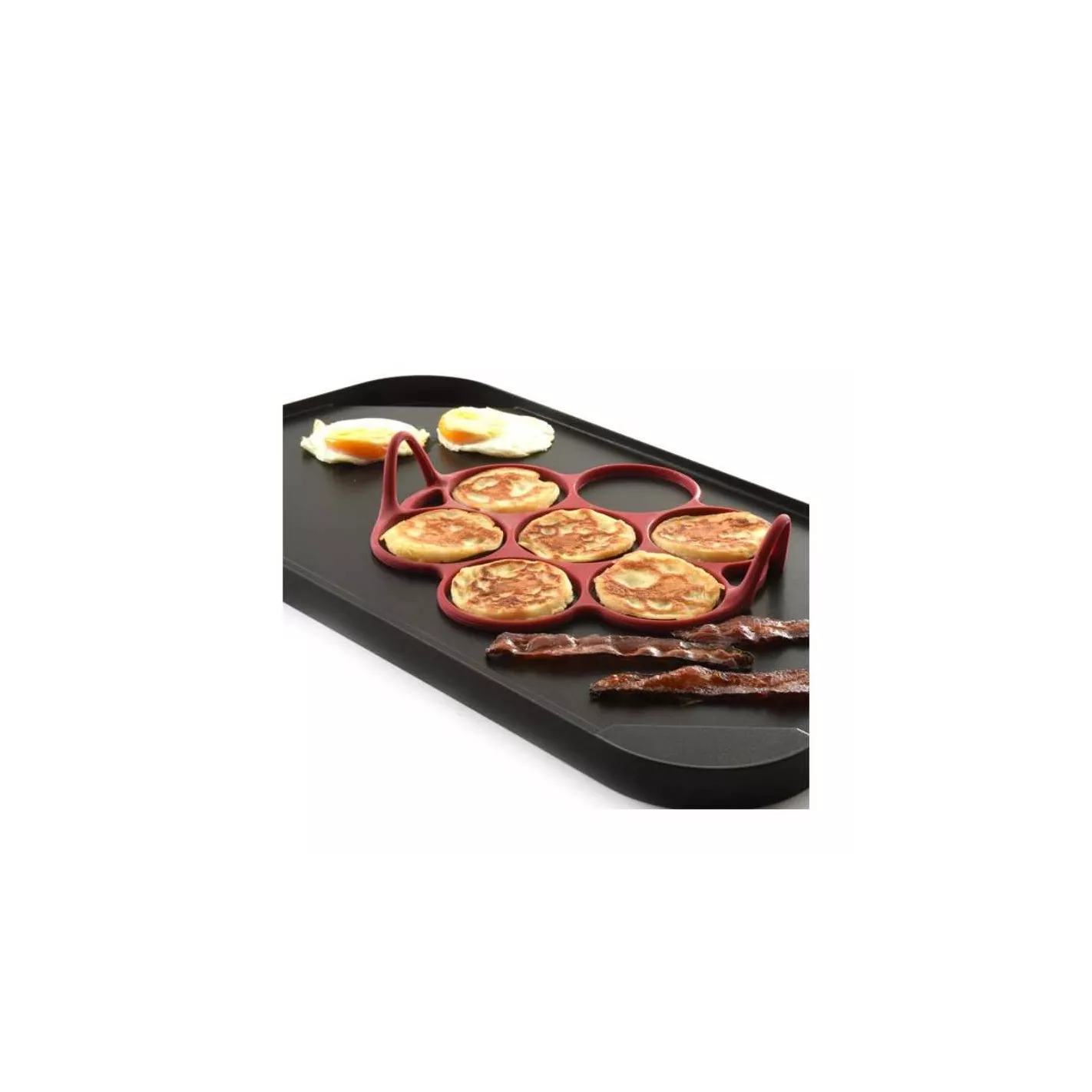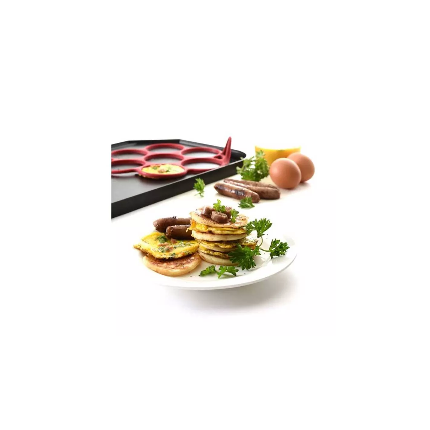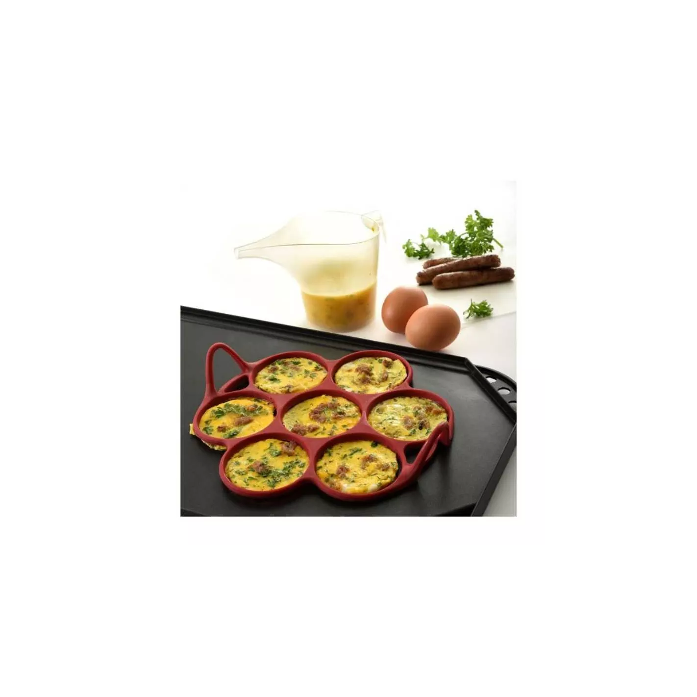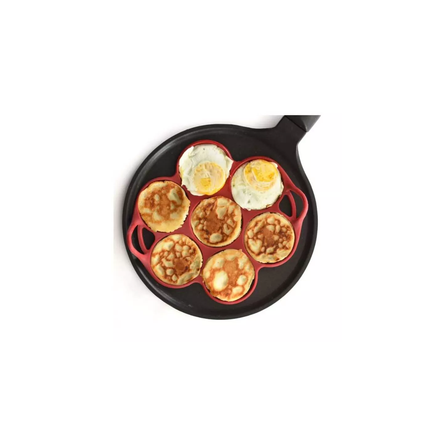 Todo un molde de silicona apto para altas temperaturas de hasta 500°F con 2.75 pulgadas de diámetro es ideal para hacer panqueques, huevos, brownies y mucho más. ¿Quién puede resistirse a estos panqueques y huevos perfectos? Úsalo en un sartén y ahorra espacio de almacenamiento.