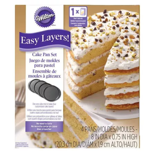 Incluso si eres un panadero novato, el juego de moldes para pasteles te hará ver como un profesional. Use estos moldes para pasteles de 8 pulgadas para crear un colorido pastel de arcoíris o apile cuatro capas de sabores para un sabroso manjar. Simplemente use su mezcla, agregue glaseado y estará listo para sorprender.