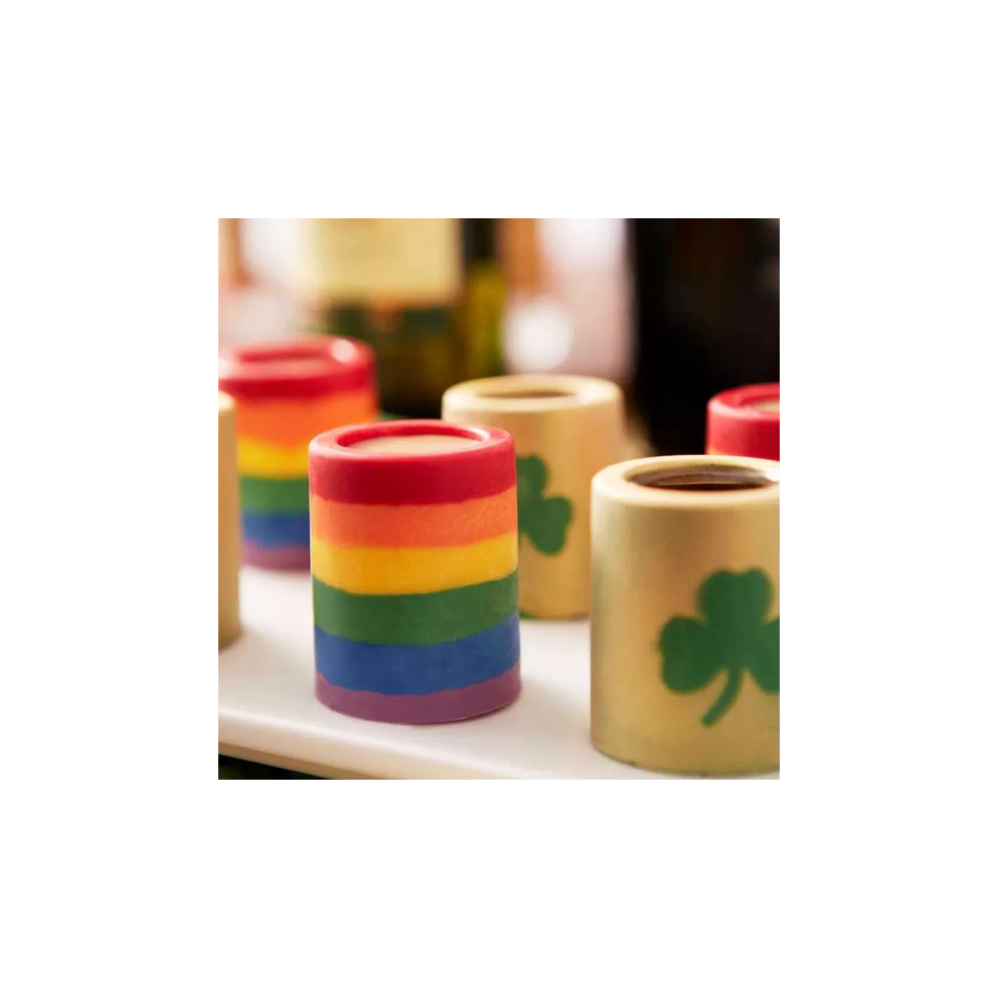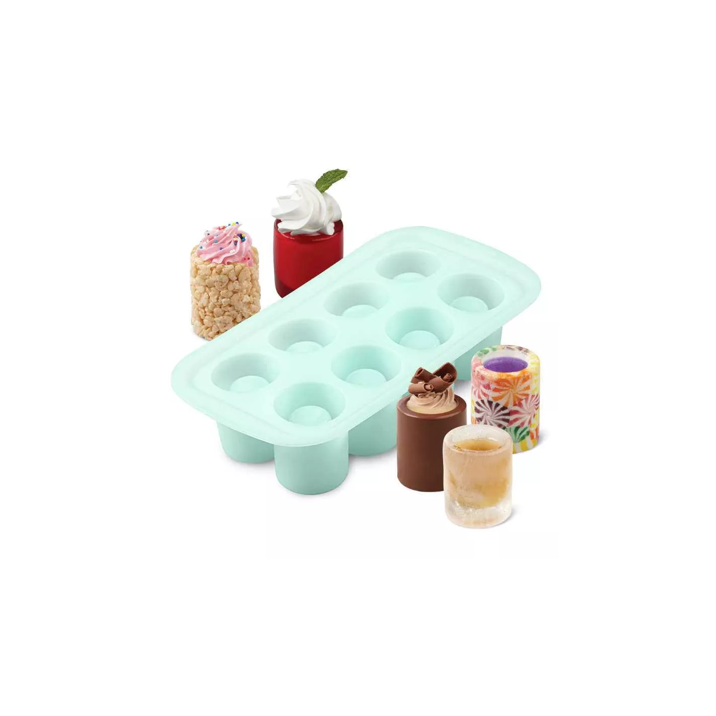 Agregue un toque único a tu próxima fiesta con vasos de chupito moldeados de chocolate, dulces, gelatina o hielo. El chocolate caliente sabe aún mucho mejor en un vaso de chupito de chocolate moldeado o sirva tragos en un vaso de hielo frío. Simplemente llene, congele e invierta moldes de silicón para liberar.