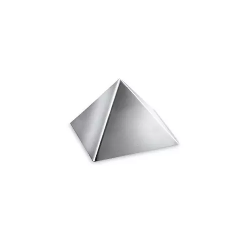 Molde de acero inoxidable para preparar postres o algún tipo de arroz y después ponerlo en el plato con esta forma de pirámide. Con este molde podrás darle un toque de originalidad y elegancia a tus platos. Tambien puedes usarlo como botanero poniendole algún soporte.