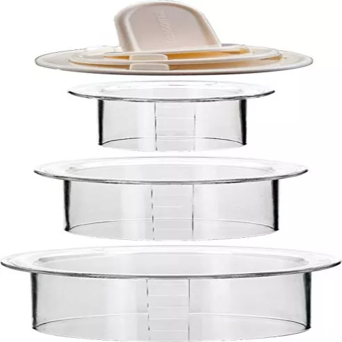Excelente para dar forma a los alimentos y hacer fácilmente entrantes en capas, guarniciones y postres. El conjunto contiene 3 moldes con una escala para hacer capas uniformes, un tamper universal y una tapa para almacenamiento.