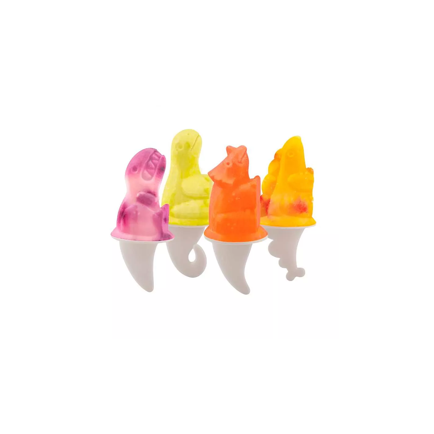 ¡Devuelve la vida a los dinosaurios! Estos moldes para paletas con forma de dinosaurios crean deliciosas golosinas heladas. Las fundas de silicona crean paletas detalladas con tus ingredientes favoritos. Las asas y las fundas se combinan para ofrecerte cuatro diseños únicos.