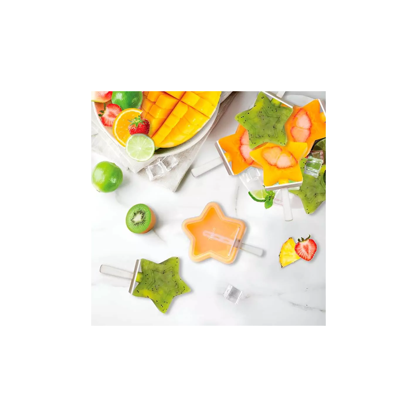 Estos moldes de paletas de hielo en forma de estrella imitan estrellas fugaces para una apariencia divertida que les encantará a los niños. Vierte la mezcla en los moldes, congela y disfruta de la mejor merienda de la tarde. Reduce las manos pegajosas con las exclusivas asas antigoteo. La base crea un pequeño tazón alrededor del palito central, que recoge las gotas de las paletas de hielo derretidas. El protector antigoteo se ajusta sobre el molde de plástico mientras se congela para contener los derrames. Los moldes de plástico encajan de forma segura en los insertos de la base para mantener las paletas en posición vertical mientras se congelan. La base resistente no se tambalea ni se inclina en el congelador, lo que garantiza una interrupción mínima durante el tiempo de congelación.USO: DOMESTICO