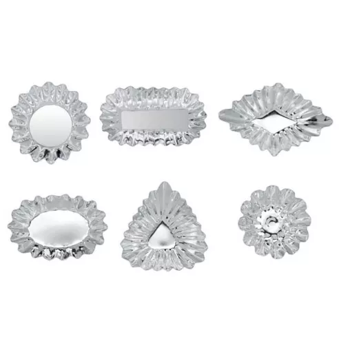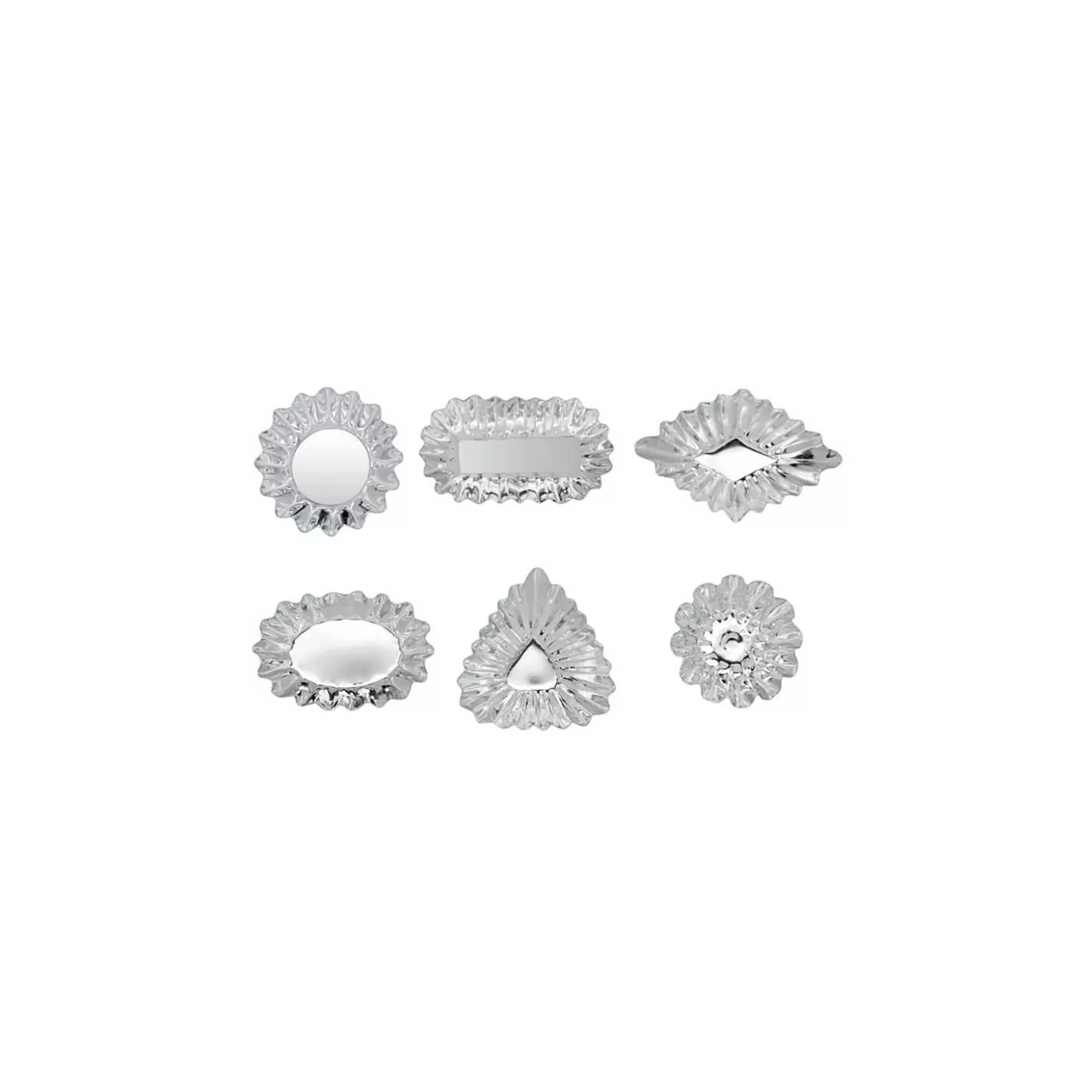 Crea una atractiva exhibición de aperitivos y postres de tamaño individual con este juego de sartenes para tartaletas. Ideal para hacer galletas sandbakkel. 6 de cada diseño, todos con bordes estriados. Formas redondas, diamantes, ovaladas, rectangulares y triangulares. Hecho de estaño resistente. Se recomienda lavar a mano. Seque bien para que no se oxiden.