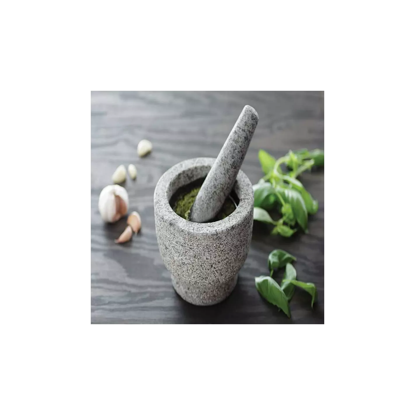 ¿Cultivas tus propias hierbas? ¿O le gusta agregarlos a sus creaciones culinarias? ¡Este hermoso mortero de granito es perfecto para moler y triturar todas sus hierbas y especias! Agregar hierbas y especias a sus platos mejora el sabor, y molerlos usted mismo es la única forma de asegurarse de que los suyos tengan todo su potencial de sabor y potencia. Hecho de granito de piedra atractivo, esta es una hermosa obra de arte en la cocina. Debido a su construcción resistente y su tamaño ideal, es muy efectivo para reducir hierbas, especias y nueces a polvos y pastas.