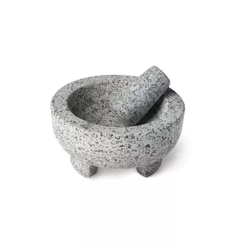 Arte y tradición se juntan en este mortero de granito mexicano. Un clásico de la cocina mexicana que se ve increíble y es tan útil como hermoso. Gracias a su gran tamaño lo hace perfecto para hacer cantidades generosas de salsas y guacamole. Este mortero de granito es perfecto para moler y mezclar todo tipo de hierbas y especias. Todas las recetas se pueden mejorar con especias frescas. Ideal también para moler nueces y hierbas, además de mezclarlos para convertirlos en pastas, salsas y cremas.