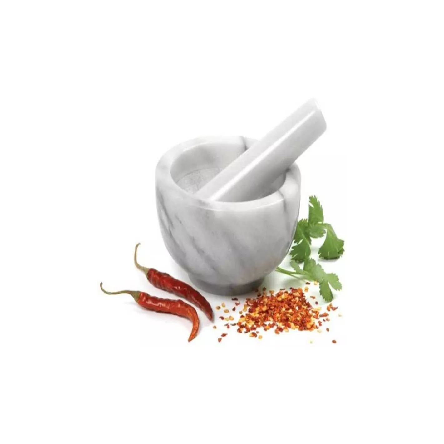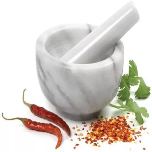 Este mortero es ideal para moler hierbas y especias o para machacar nueces. Hecho de mármol atractivo y la mano del mortero está ligeramente afilada para un rendimiento óptimo. Tiene una capacidad de 7 onzas. Lavado a mano recomendado.