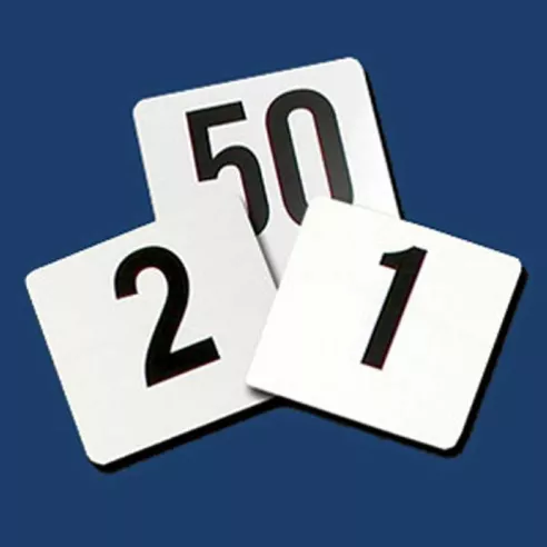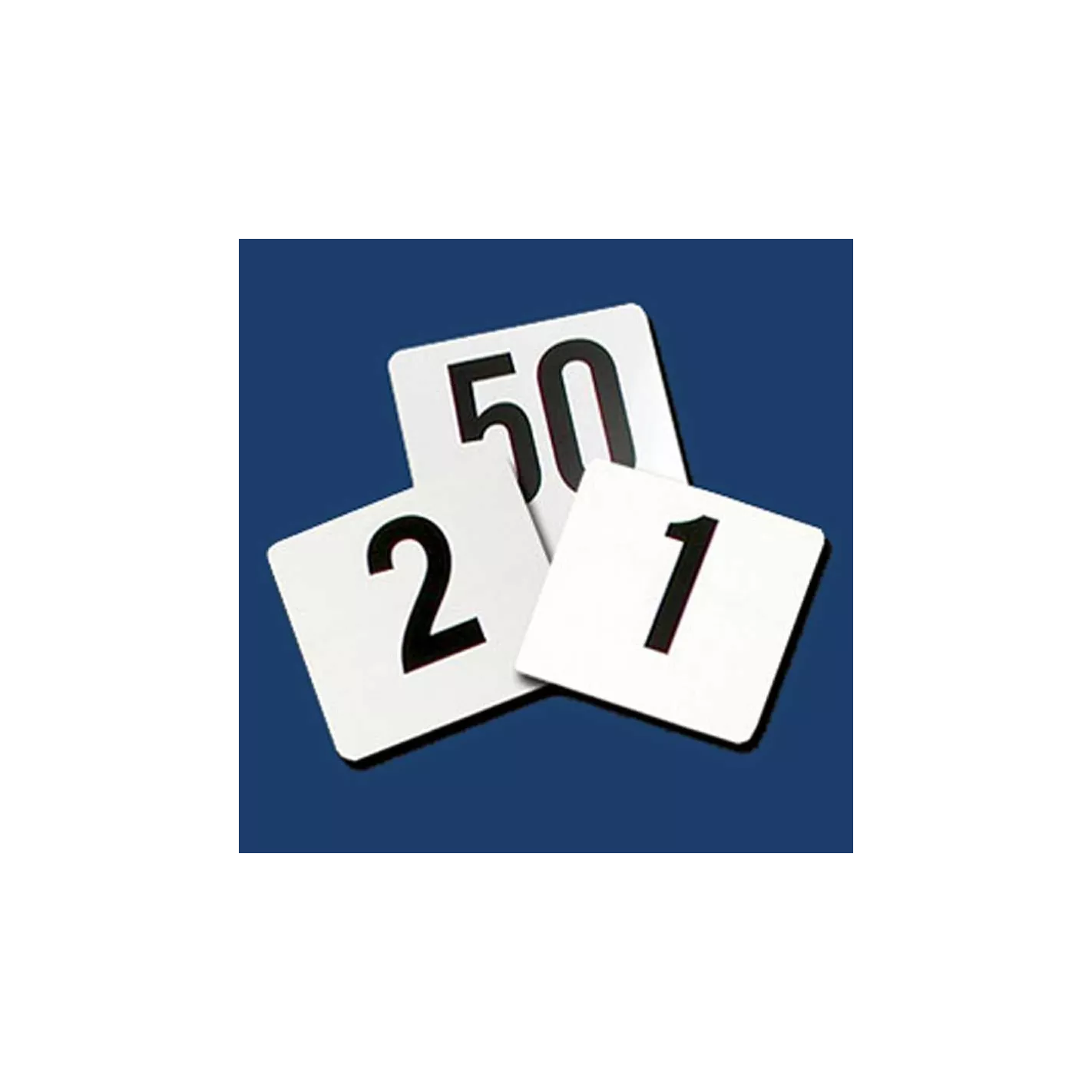 Organice fácilmente asientos en su restaurante, hotel o evento con servicio de mesa, con los números del 1 al 50 de plástico. Este conjunto de tarjetas está diseñado con una impresión negrita sobre un fondo blanco para una máxima visibilidad.