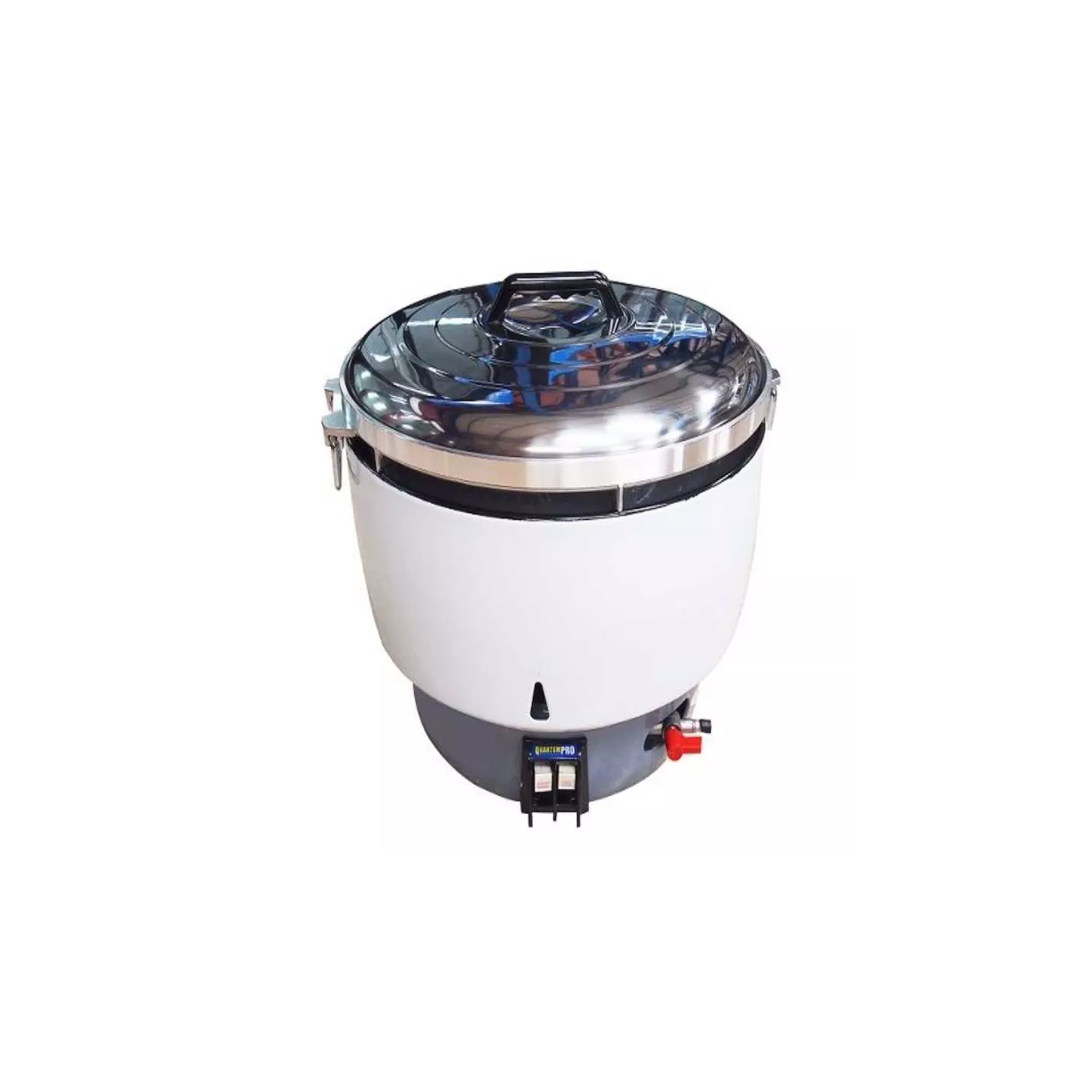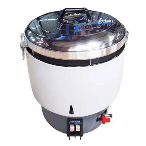 La olla arrocera comercial incluye un termostato, una taza medidora y una cuchara incorporados, y el tazón está fabricado en aluminio fundido de alta resistencia. Con este elemento, todo lo que tiene que hacer es activar un interruptor y puede determinar el clima en el que calentará o cocinará el arroz.