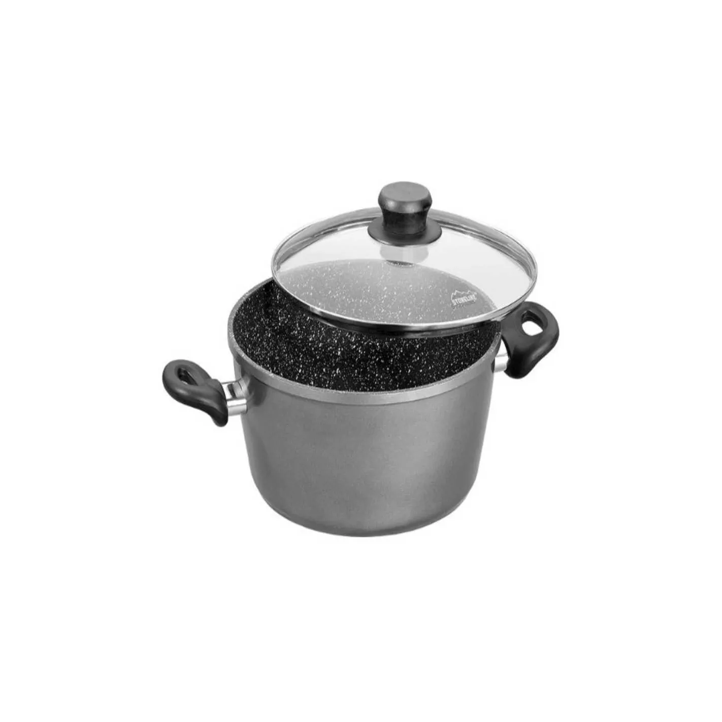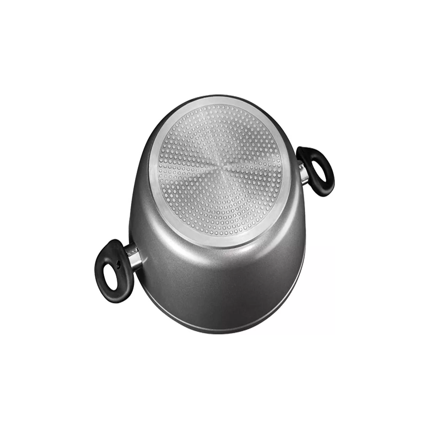 La olla es perfecta para cocinar sin grasa, tiene una capacidad de casi 2.5 litros y una altura de aprox 9.5 centímetros. Esta olla de aluminio fundido a presión es perfecta para preparar comidas más grandes. Gracias al revestimiento antiadherente premium, puede freír fácilmente los alimentos en esta olla para asar si puede cocinar sin grasa ni aceite. La olla viene con su tapa de vidrio. Es apta para las cocinas, incluida la Inducción.