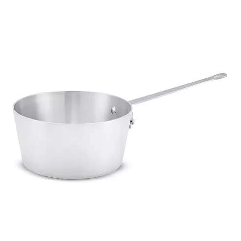 La olla para salsa está hecha de aluminio con acabado espejo, es un diseño excepcional para calentar los alimentos a fondo para la consistencia del sabor. Con el material del que está hecho, el producto tiene una superficie resistente a las abolladuras para soportar el trabajo profesional de la cocina y también puede usarse en el hogar. La cacerola es fácil de limpiar, pero se recomienda lavarla a mano.