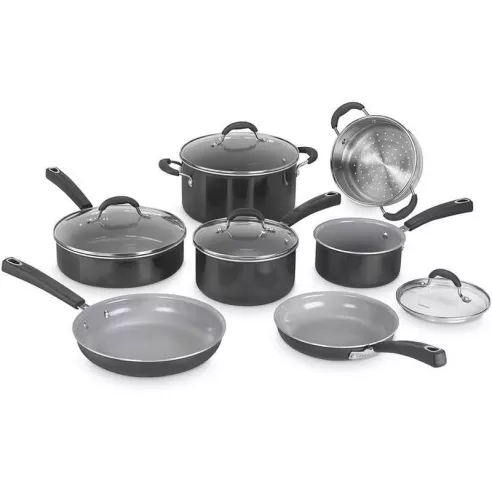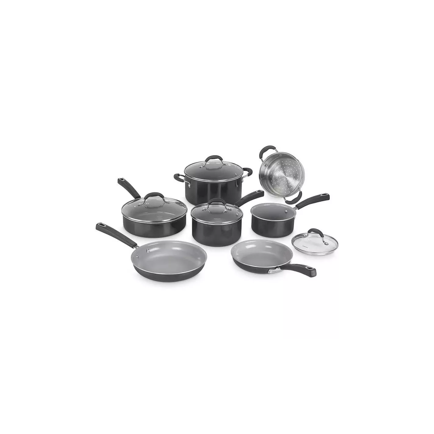 Realice todas las tareas de cocina, grandes o pequeñas, con el juego de utensilios antiadherentes Cuisinart Advantage Ceramica XT. Ahora puedes cocinar a fuego lento, saltear, freír, hervir. Nuestro exclusivo interior antiadherente Ceramica XT está reforzado con titanio para una mayor liberación de alimentos y durabilidad. El potente antiadherente no mancha ni decolora. El núcleo de aluminio del utensilios de cocina se calienta de forma rápida y uniforme.MATERIAL: CERAMICA