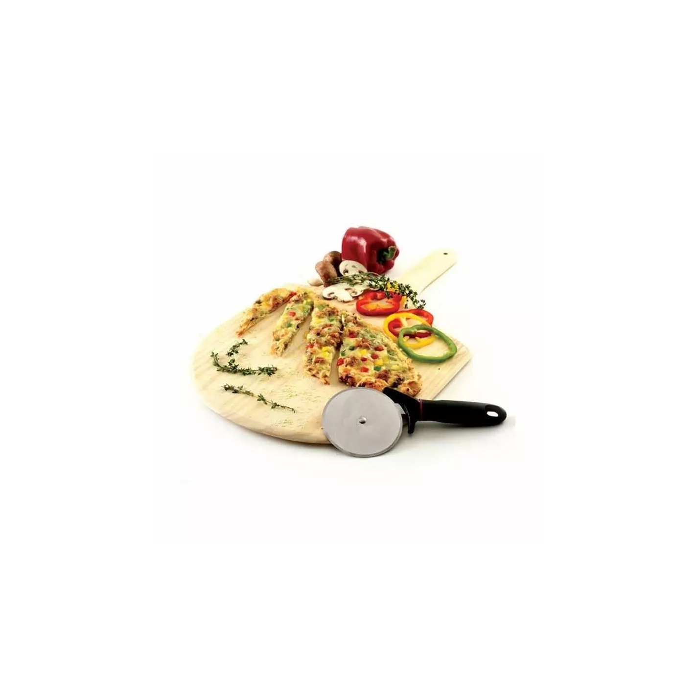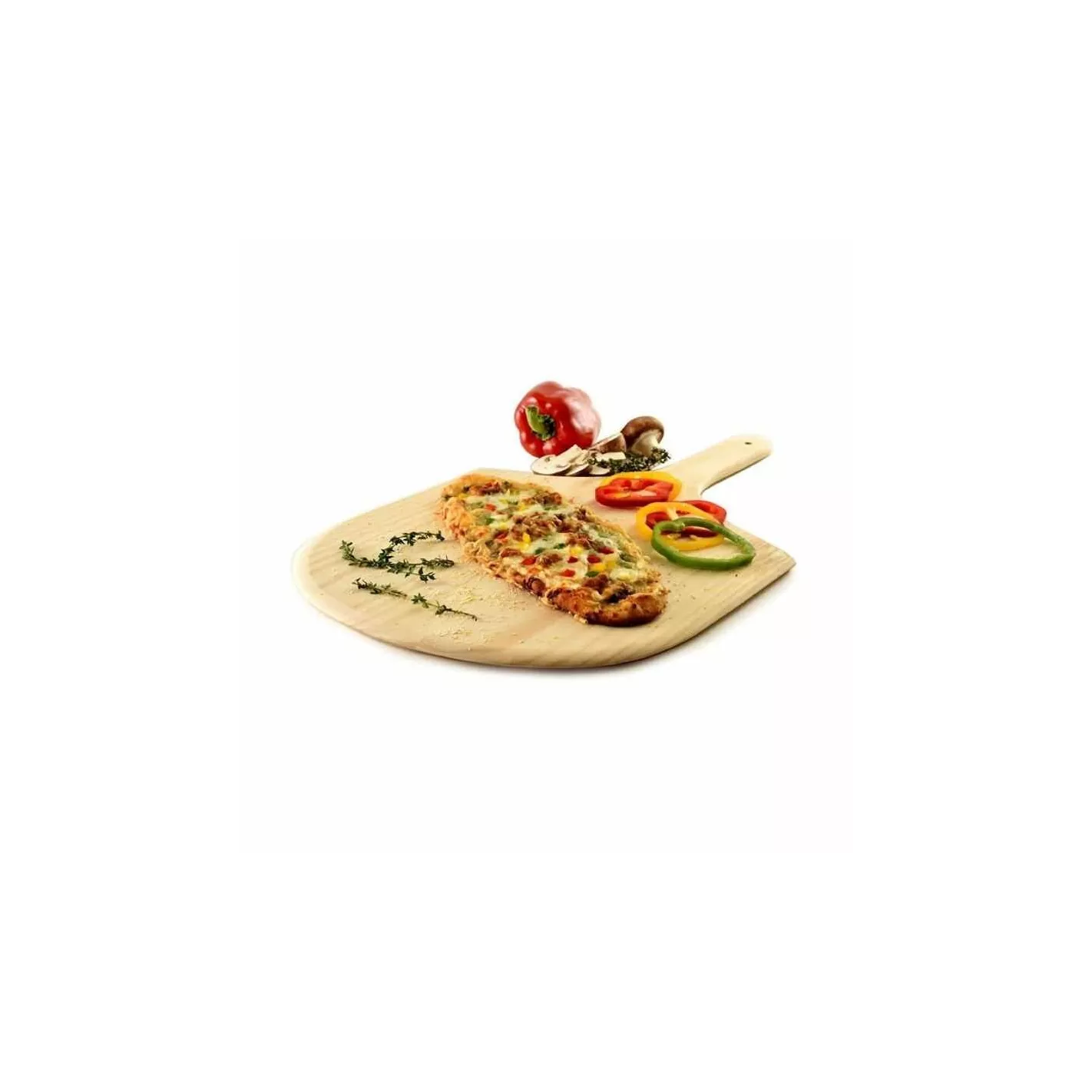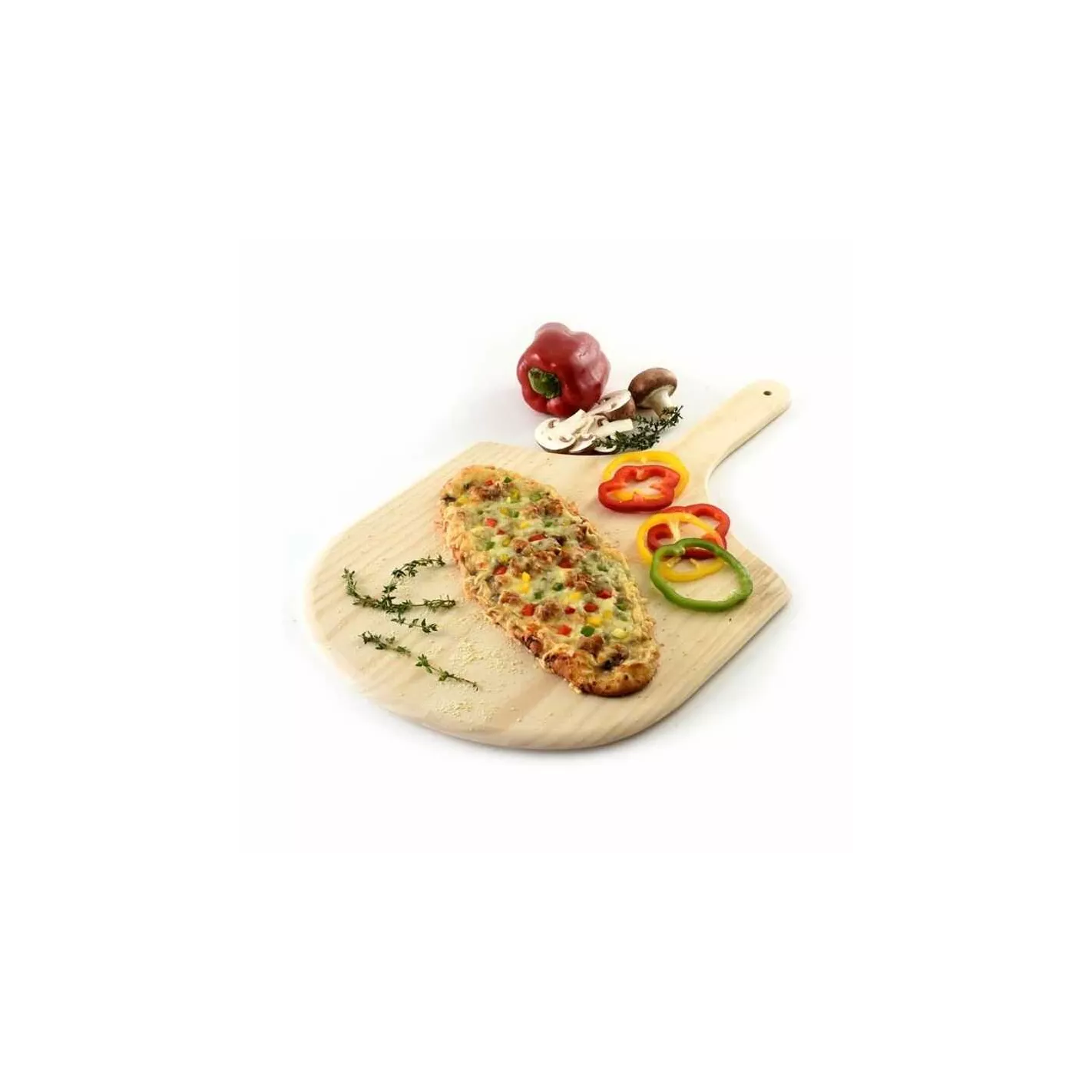Levanta sin esfuerzo tu pizza de tu horno con esta paleta de pizza de calidad! Hecho de madera de pino duradera y resistente, esta pala levanta la pizza de forma segura, eliminando el daño de la corteza. Incluye un mango largo y cómodo para mantener las manos alejadas del calor del horno y protegerlo de las quemaduras. Fácil de usar y limpiar, esta tabla versátil también es ideal como tabla de cortar o bandeja de servir.