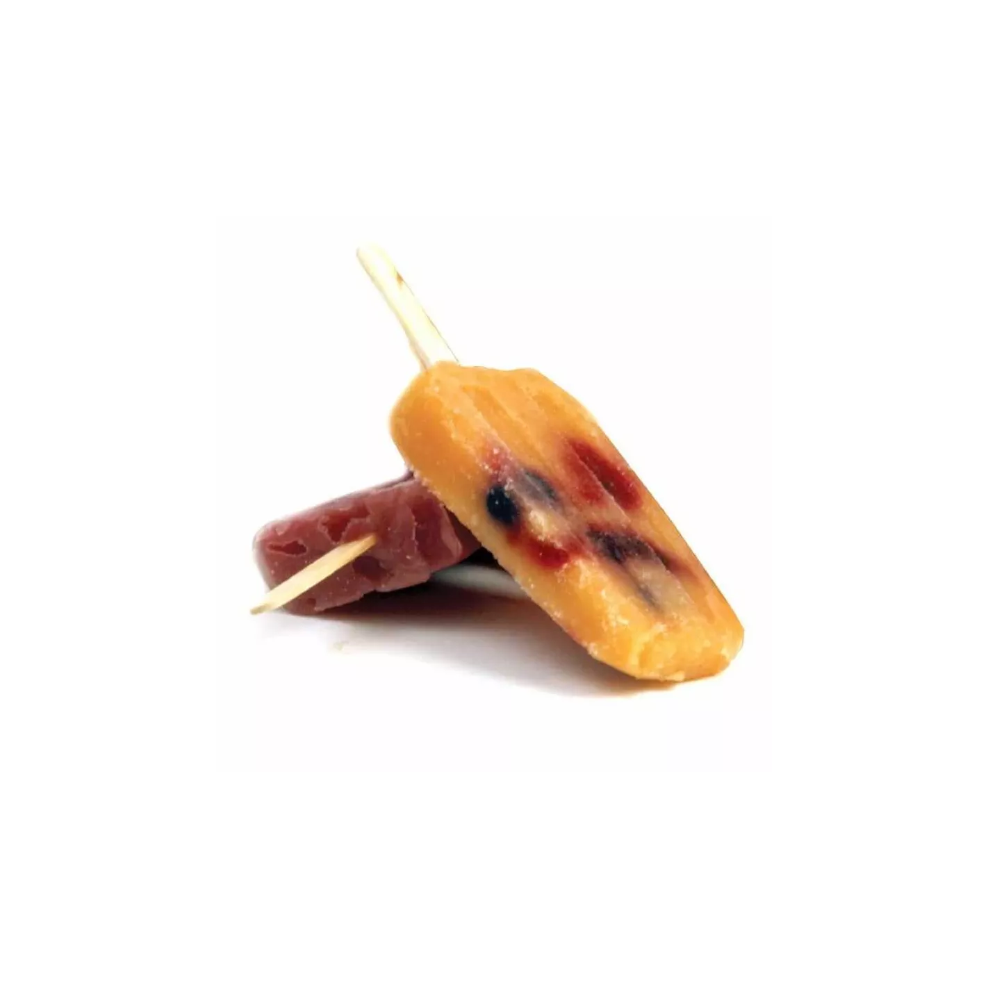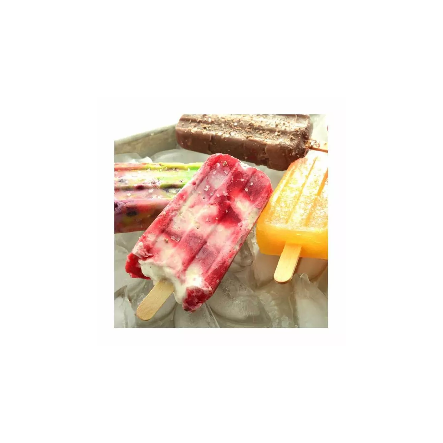 Consejos útiles: Remoje los palitos de madera en agua tibia y congélelos antes de insertarlos en los moldes de hielo para evitar que los palitos floten y / o se salgan cuando retire el hielo de su molde.
