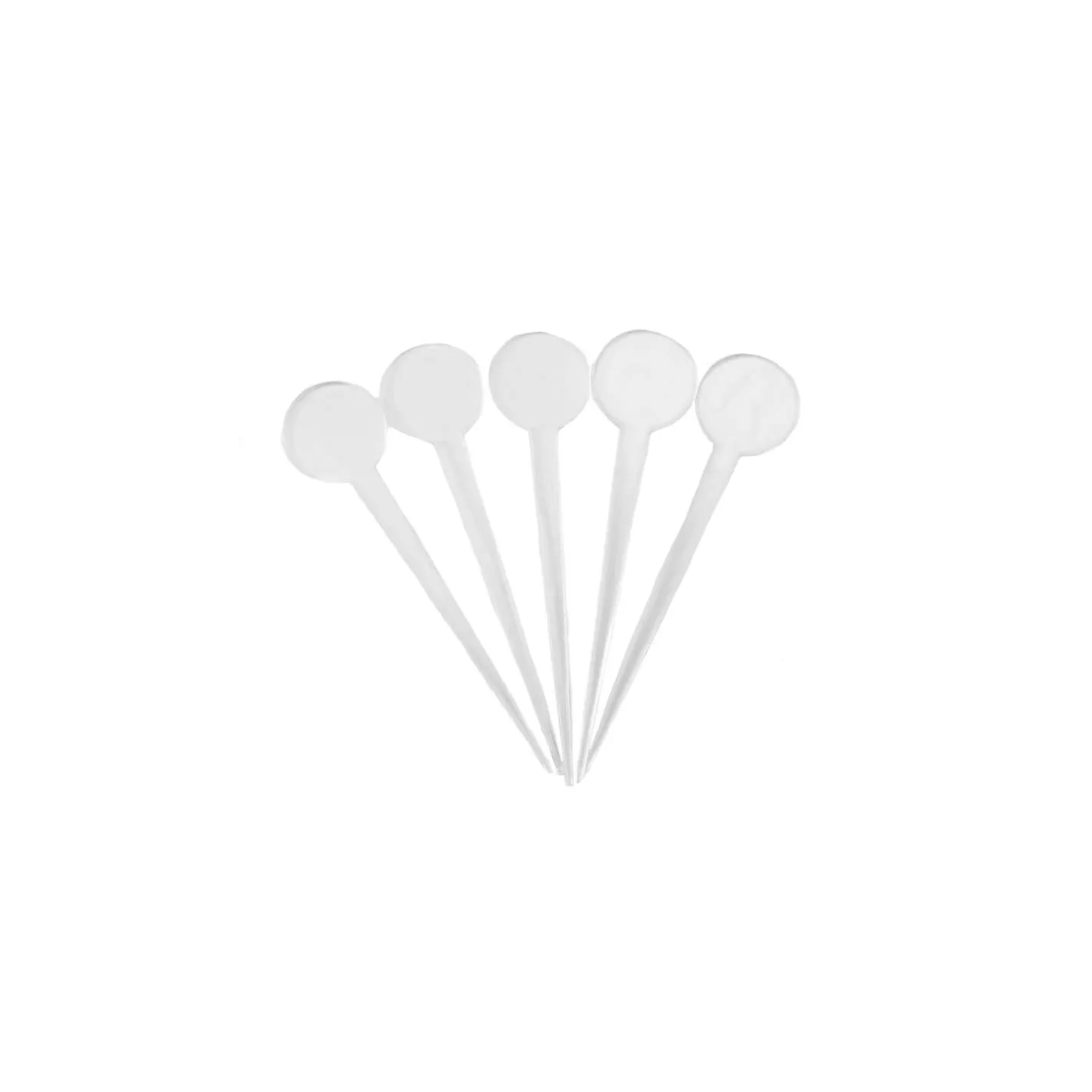 De plástico desechable estos palillos de cóctel con forma lisa en la parte superior son de un material sostenible y respetuoso con el medio ambiente. Bonito y práctico, cómodo de usar, también ideal para adornos de mesa, para servir aperitivos en reuniones familiares, en cumpleaños, reuniones sociales entre otras.