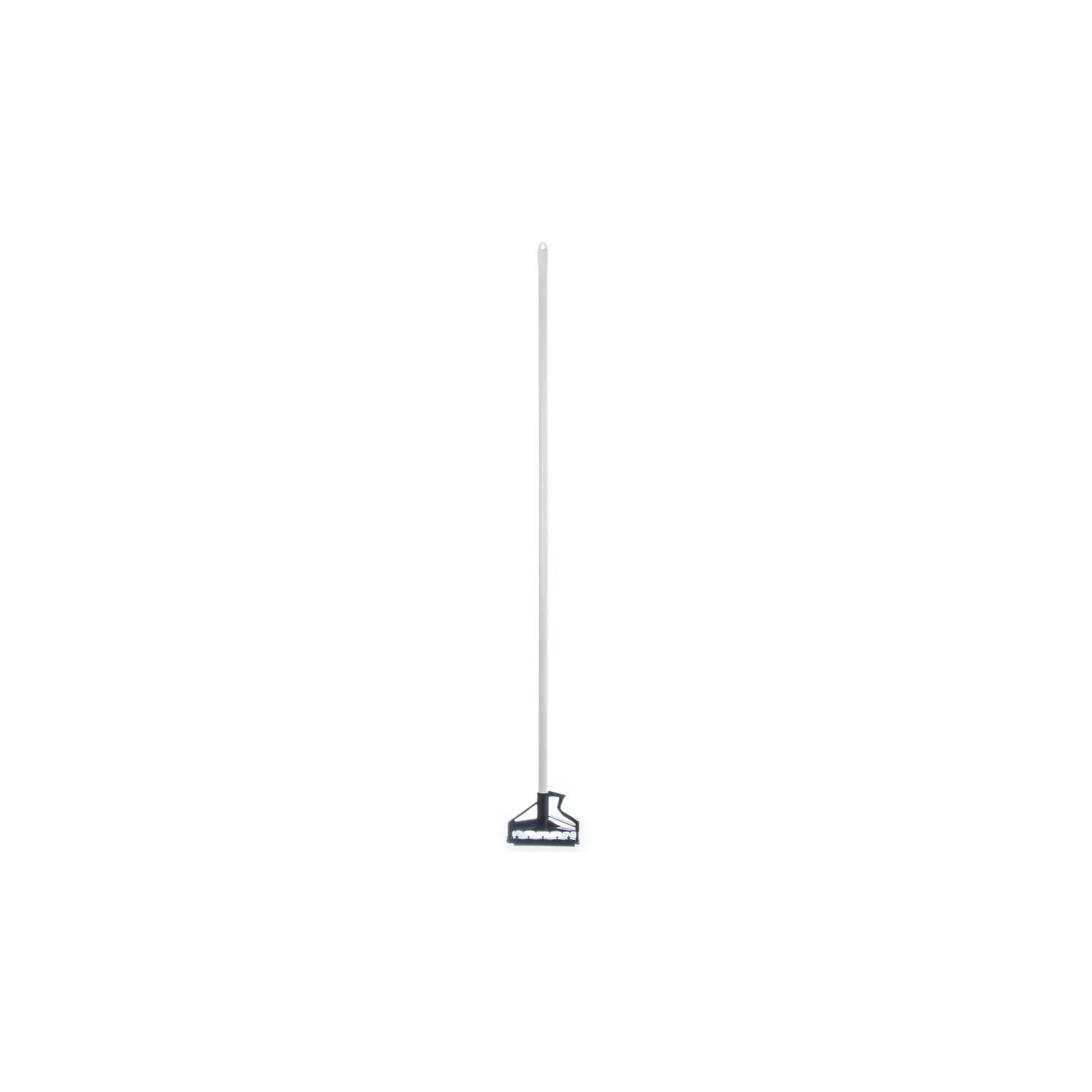 El mango Sparta Spectrum de fibra de vidrio blanco con mango de punta flexible atornilla y se fija en las escobas, barredoras, rasquetas y exfoliantes de piso. Está hecho de fibra de vidrio para mayor flexibilidad y distribuye el estrés sobre el mango. Hay una tapa en la parte superior del mango para colgar y guardar. El artículo mide 1 x 36 pulgadas (Diámetro x Altura).
