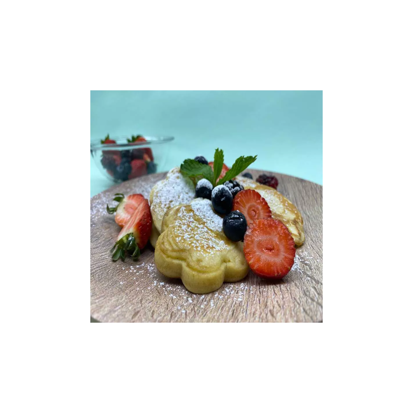 2. Calentar un sartén antiadherente y colocar el molde de flor de silicon colocar aceite en spray.