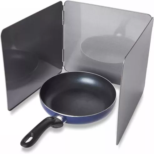 Nuestro protector antisalpicaduras está diseñado para hacer su vida un poco más fácil y proteger las áreas circundantes cuando cocina en la estufa. Los 3 paneles se pueden colocar alrededor de ollas y sartenes al cocinar salsas, freír tocino y más. Su revestimiento antiadherente permite una limpieza más sencilla y un almacenamiento que ahorra espacio. Los paneles se pueden plegar juntos de forma plana. Mantenga su cocina protegida y limpia con este accesorio conveniente.