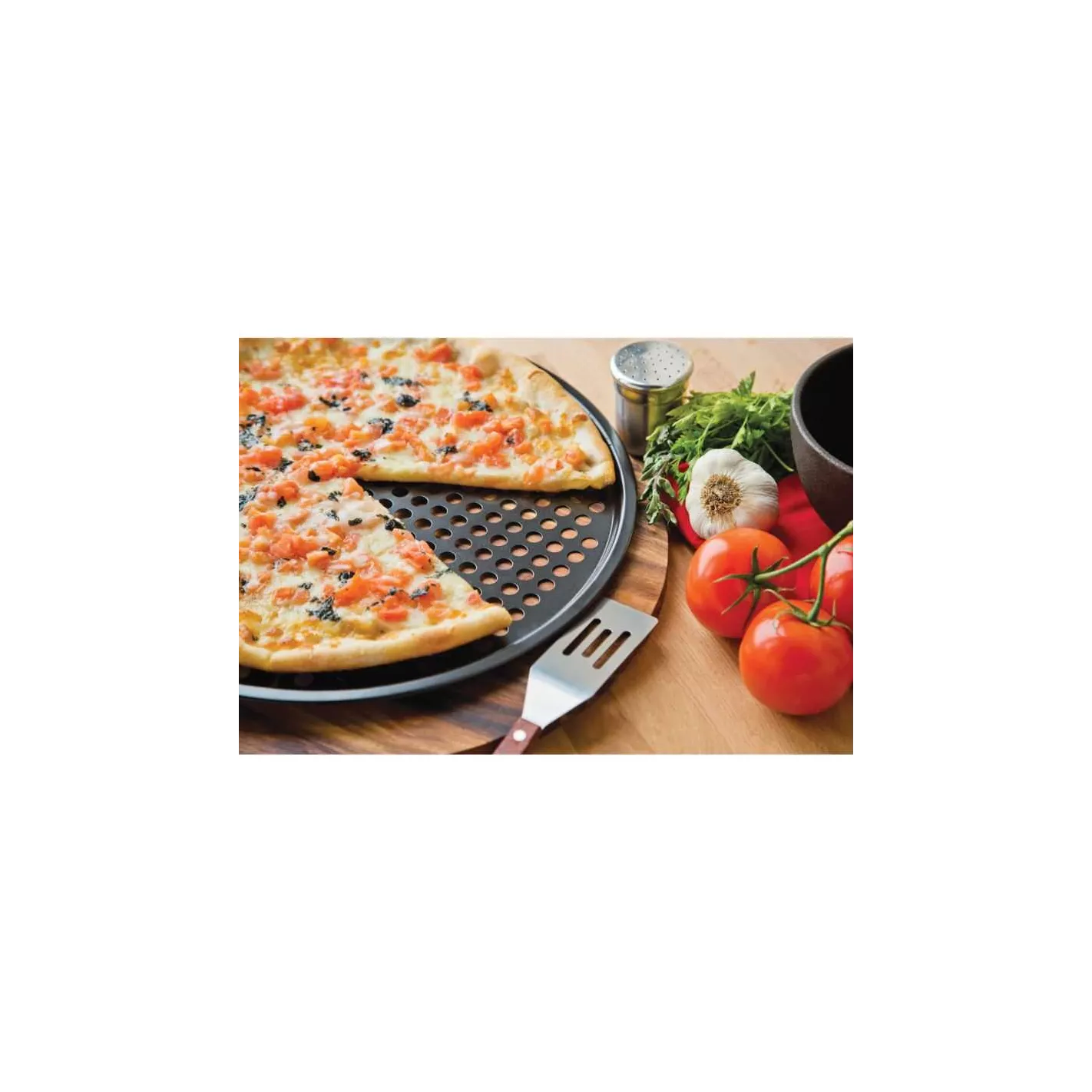La parrilla de pizza está diseñado para permitir que su pizza se hornee a la perfección crujiente y dorada de manera rápida y fácil. Hecho de acero al carbono resistente, la bandeja presenta una superficie perforada imprescindible para una distribución uniforme del calor y la circulación del aire, con una superficie antiadherente conveniente para una fácil extracción y limpieza.