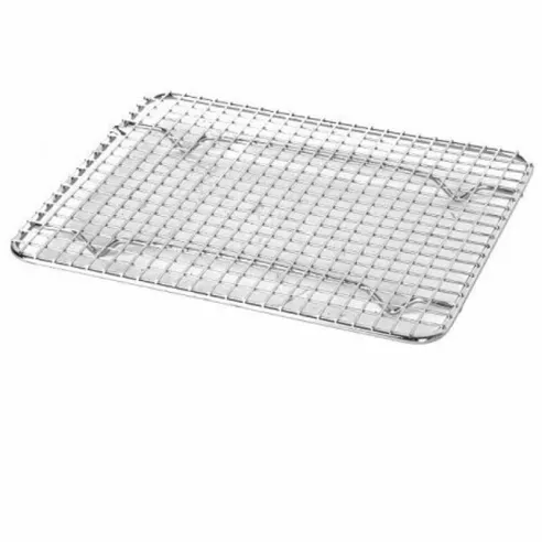 Use la rejilla de alambre de tamaño completo Thunder Group SLWG003 de 18 x 10 pulgadas para hacer que las verduras al vapor y otros alimentos sean rápidos y convenientes. Construido con una rejilla de malla y patas soldadas, este estante cromado está diseñado para permitir una ventilación de aire adecuada alrededor de los alimentos, asegurando una cocción uniforme y completa. Esta rejilla para hornear multiusos también se puede usar para enfriar productos recién horneados y como rejilla de secado para drenar el aceite de los alimentos fritos.