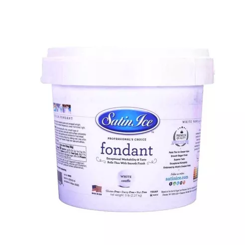 Pasta Australiana color blanco. Fondant de primera calidad para crear un acabado suave y elegante para la elaboración pasteles. Además, se utiliza como una pasta de modelado para crear bordes decorativos, flores, figuritas, arcos. Producto vegano. Ingredientes: Azúcar, jarabe de maíz, agua, aceite de Palma, goma pegamento tragacanto (413) (estabilizador), aromas naturales y artificiales, dióxido de titanio (E171) (colorante), goma de celulosa (espesante), glicerina (E422) (humectante), almidón de maíz modificado, sorbato de potasio (E202) (conservante), ácido acético (conservante).